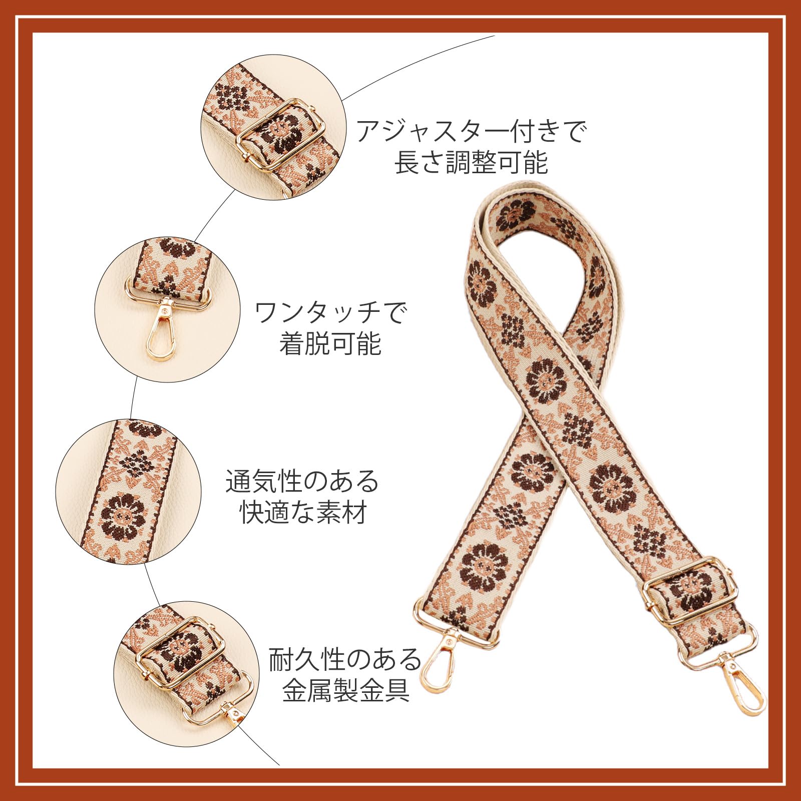 ALLZEDREAM ワイドバッグストラップ 交換用 クロスボディ ショルダーバッグ用 調節可能 ベルト