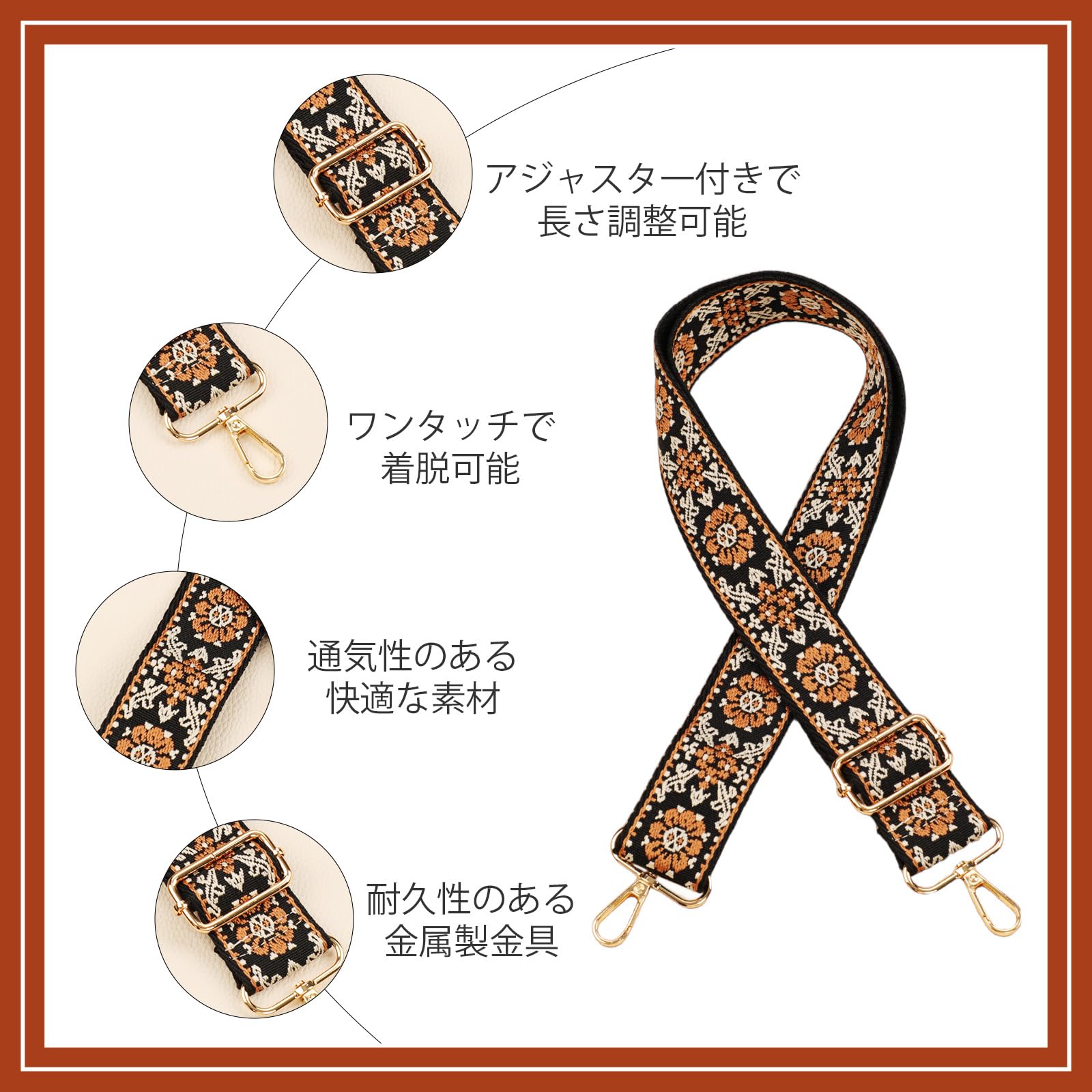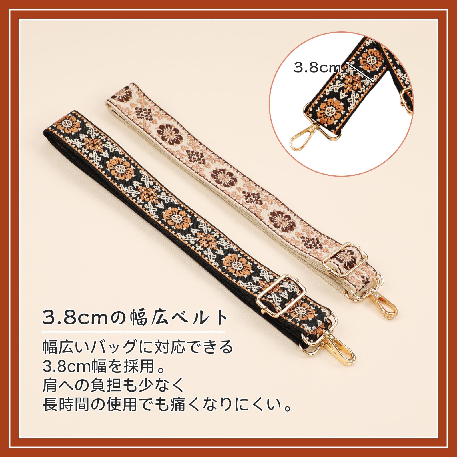 ALLZEDREAM ワイドバッグストラップ 交換用 クロスボディ ショルダーバッグ用 調節可能 ベルト