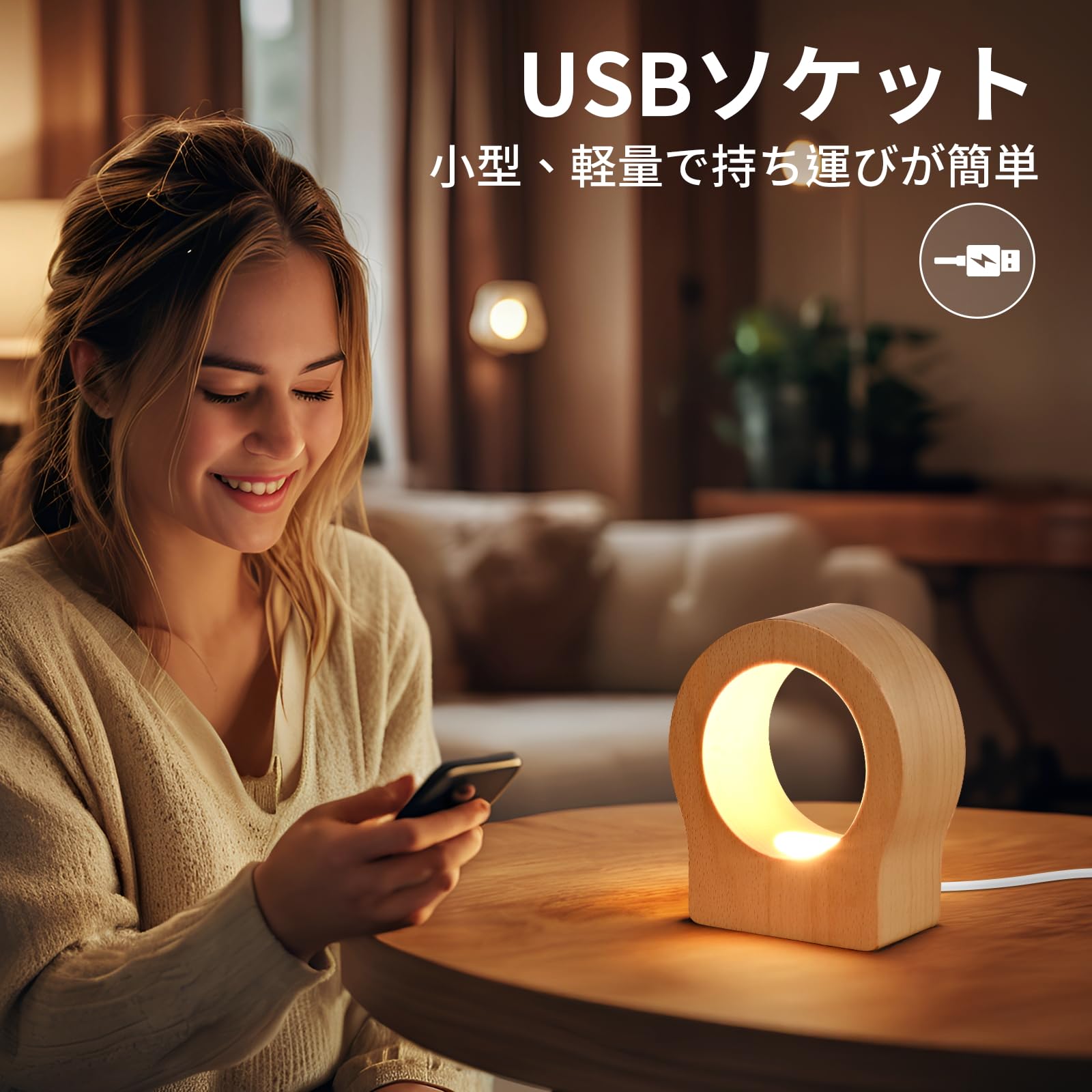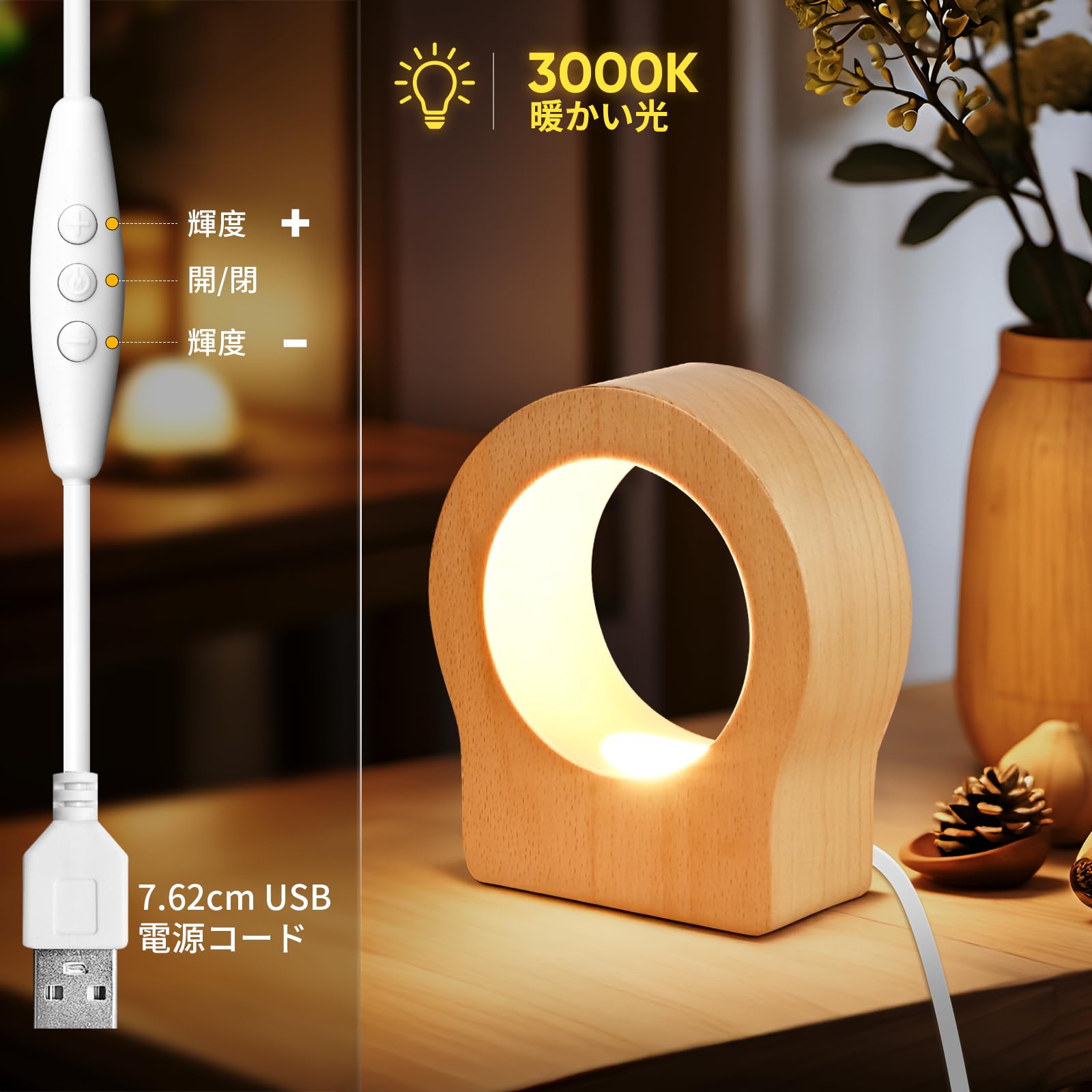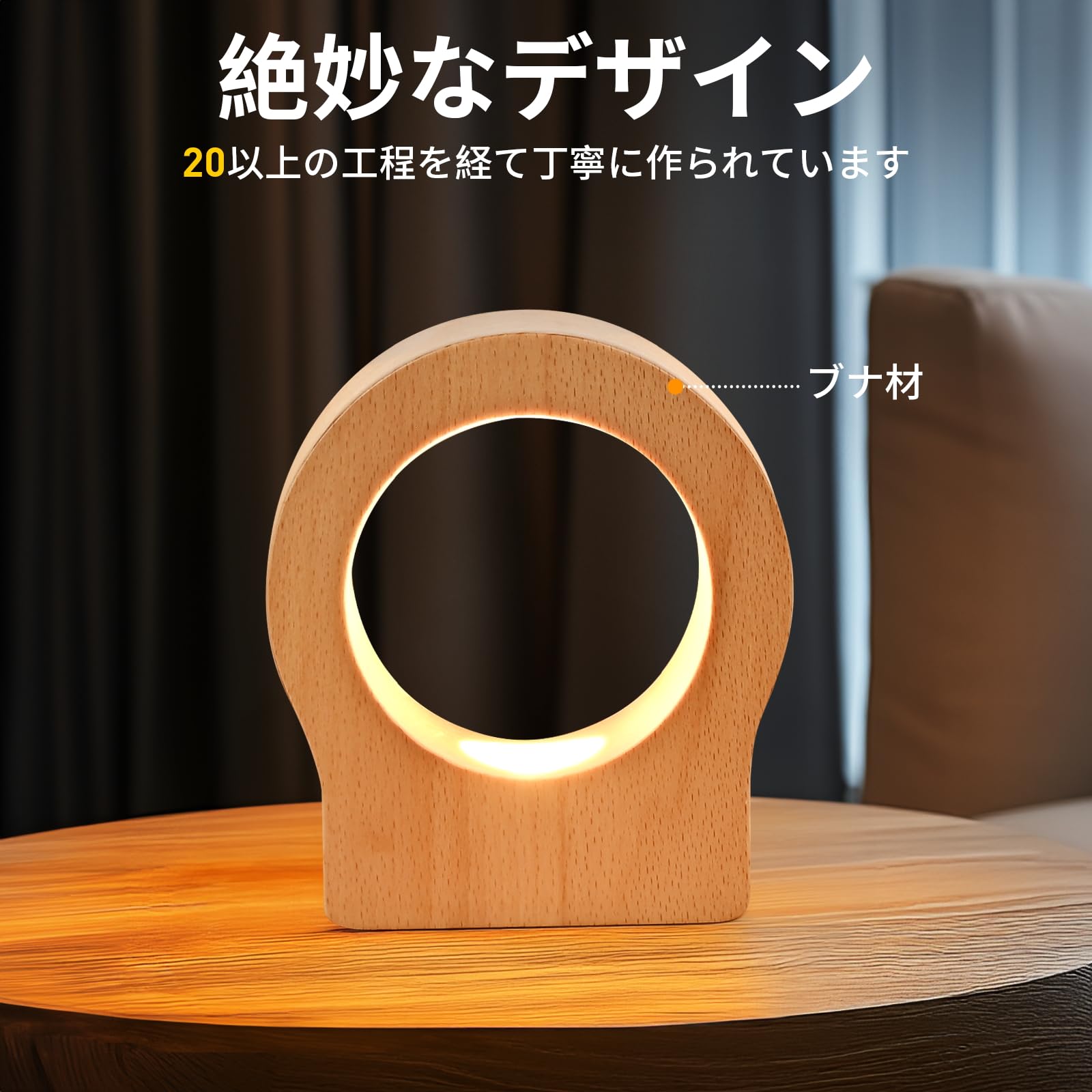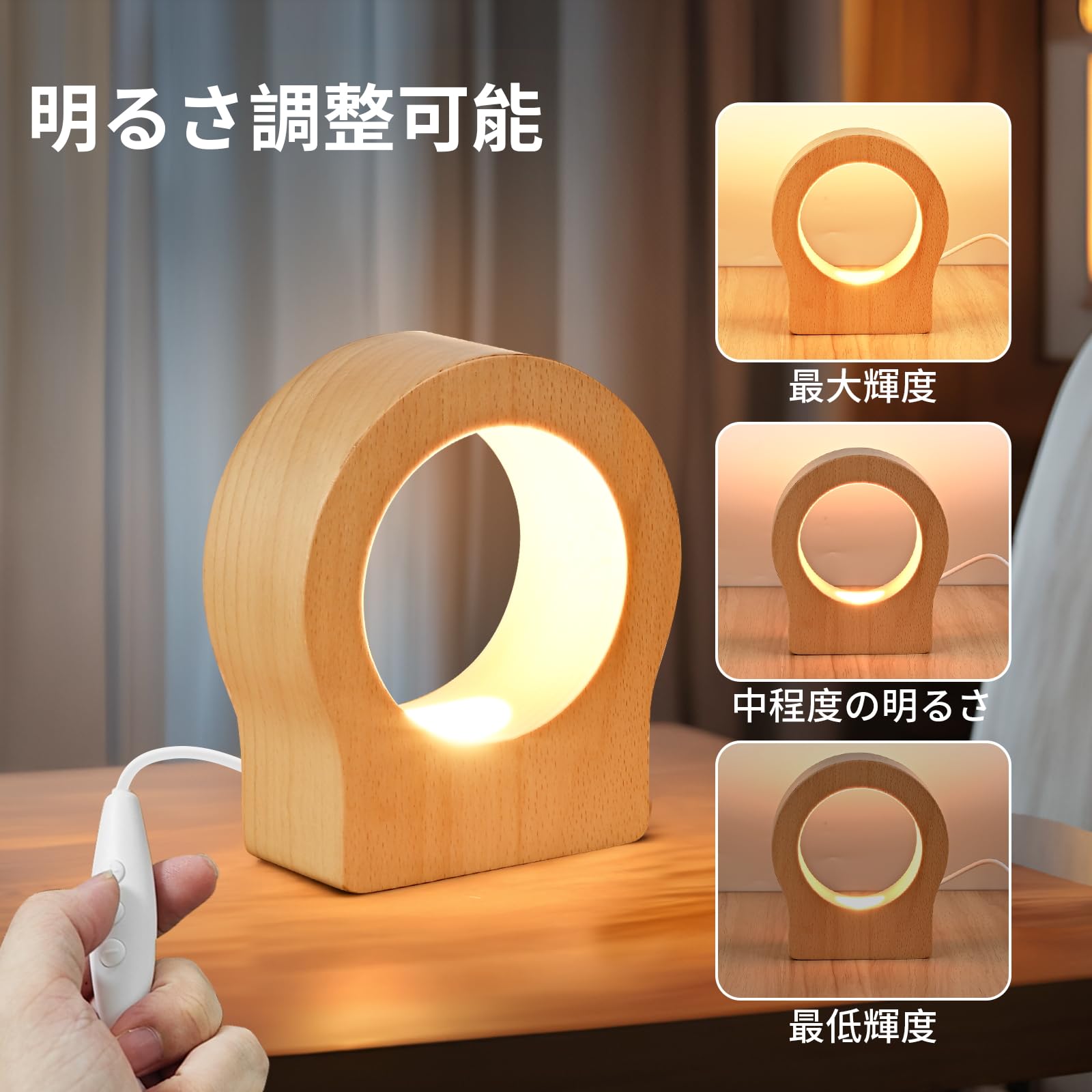 赤ちゃんの保育園のための充電式ナイトライト、ワイヤレス LED ベッドサイドランプ、調光機能付き木製テーブルランプ、子供用タッチライト、授乳用、寝室、クリエイティブな室内装飾、ユニークな新築祝いギフト