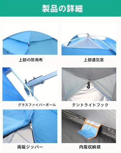 ポップアップテント テント ワンタッチテント 簡易テント ワンタッチ 1人用 サンシェードテント 2-3人用 軽量 屋内 用 テント 運動会 テント 通気性 アウトドアビーチテント ワンポールテント UVカット 防災 キャンプ用品(ブルーストリップ)