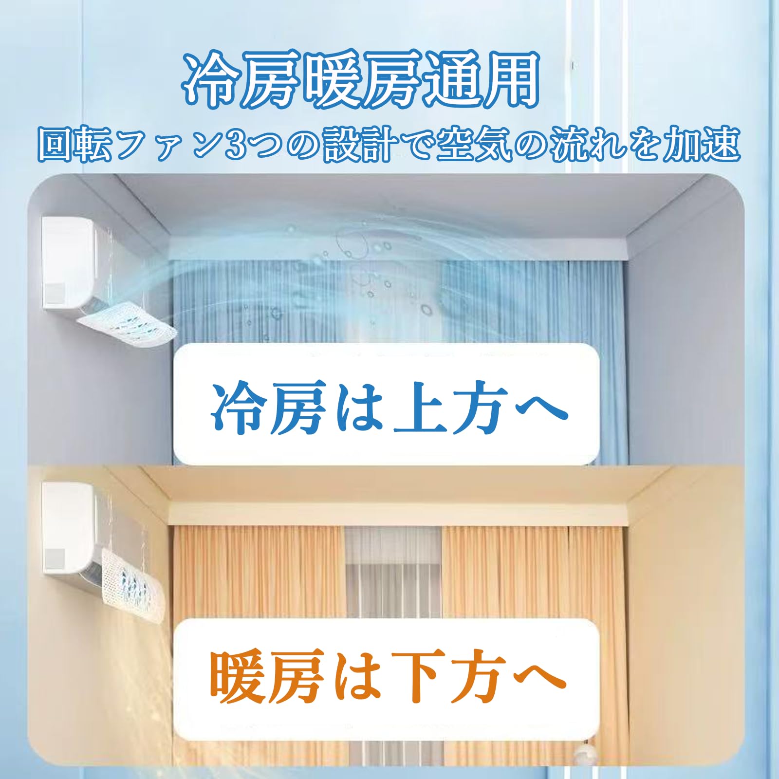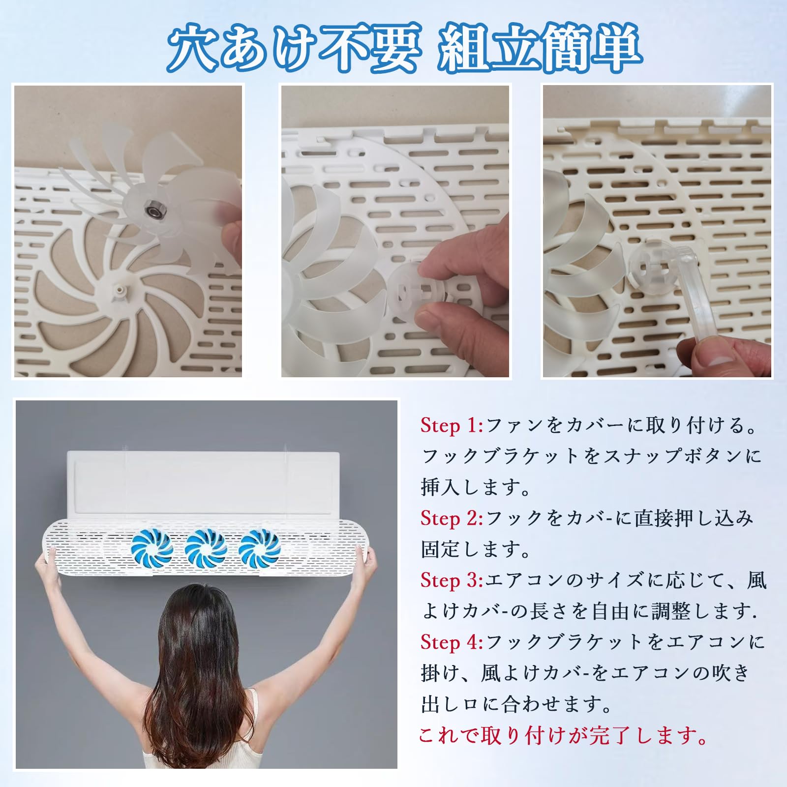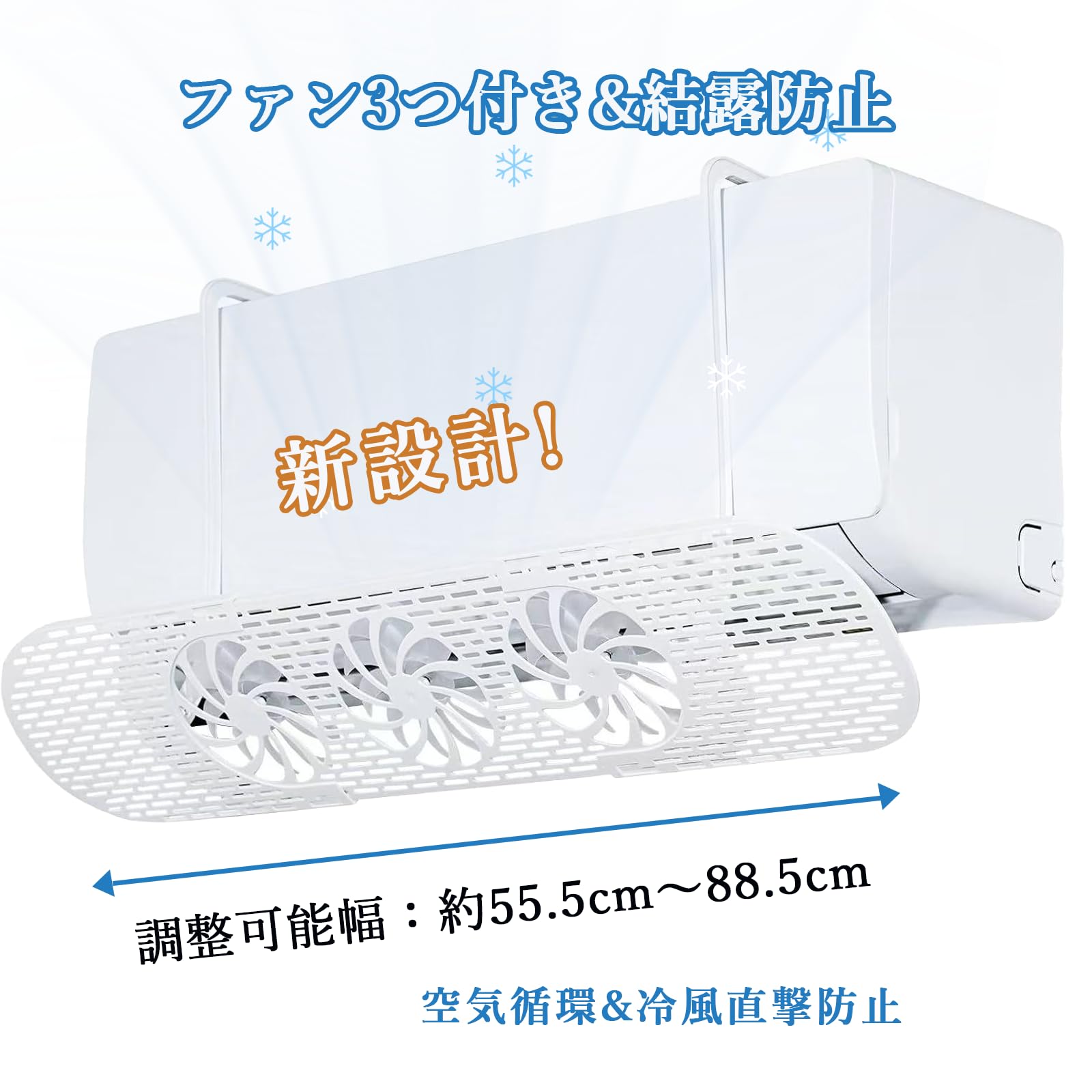 エアコン風よけカバー ファン付き 直撃風防止 エアコン風よけ ファン3つ付き 省電 風向き上下180°調整 壁掛け 伸縮自在 56~88cm 冷房暖房通用 工具不要 取り付け簡単