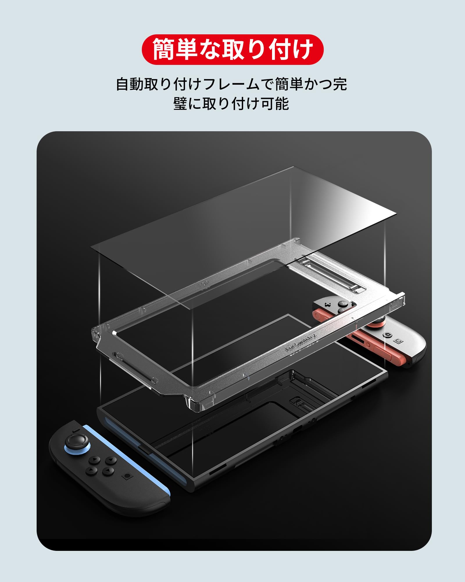 TRANSNOVO【2枚+専用枠付】2025 Switch 2対応保護画面ガラスフィルム ニンテンドースイッチ用 強化ガラス 9H硬度 高透過率 自動位置合わせ 気泡ゼロ設計 貼り付け簡単 耐衝撃仕様