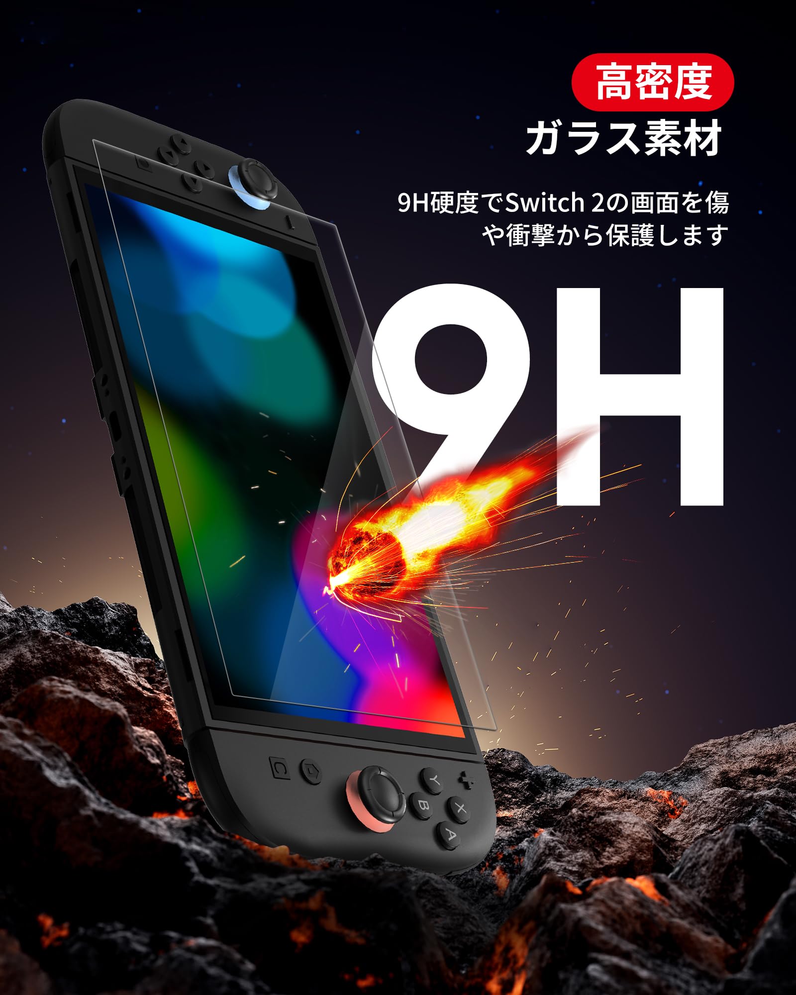 TRANSNOVO 【2枚セット】対応Switch 2 保護画面ガラスフィルム2025ニンテンドースイッチ用 強化ガラス 9H硬度 高透過率 指紋・気泡防止 耐衝撃設計 高感度タッチ対応 撥水撥油