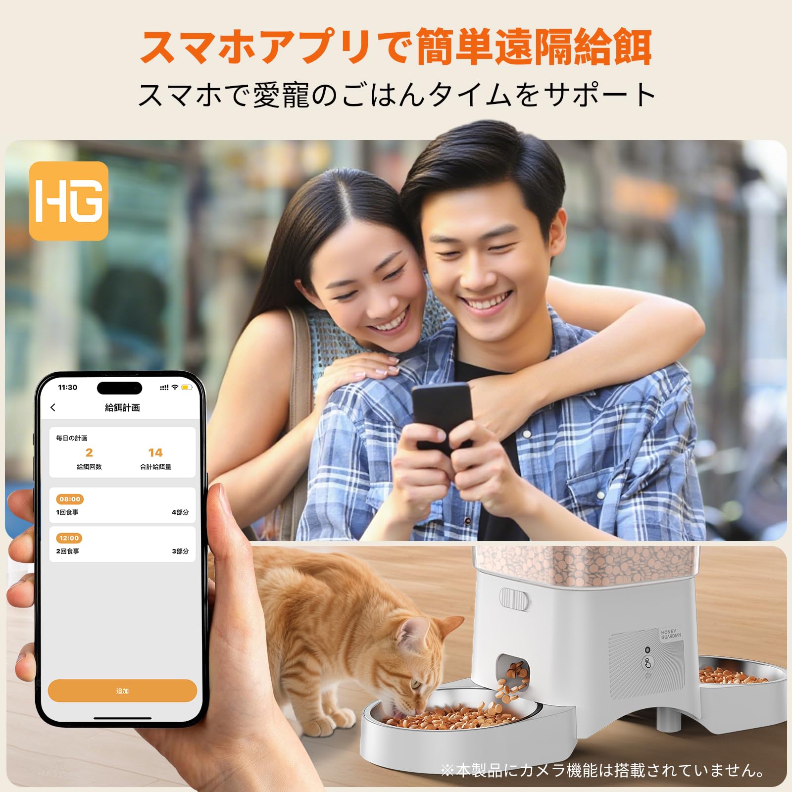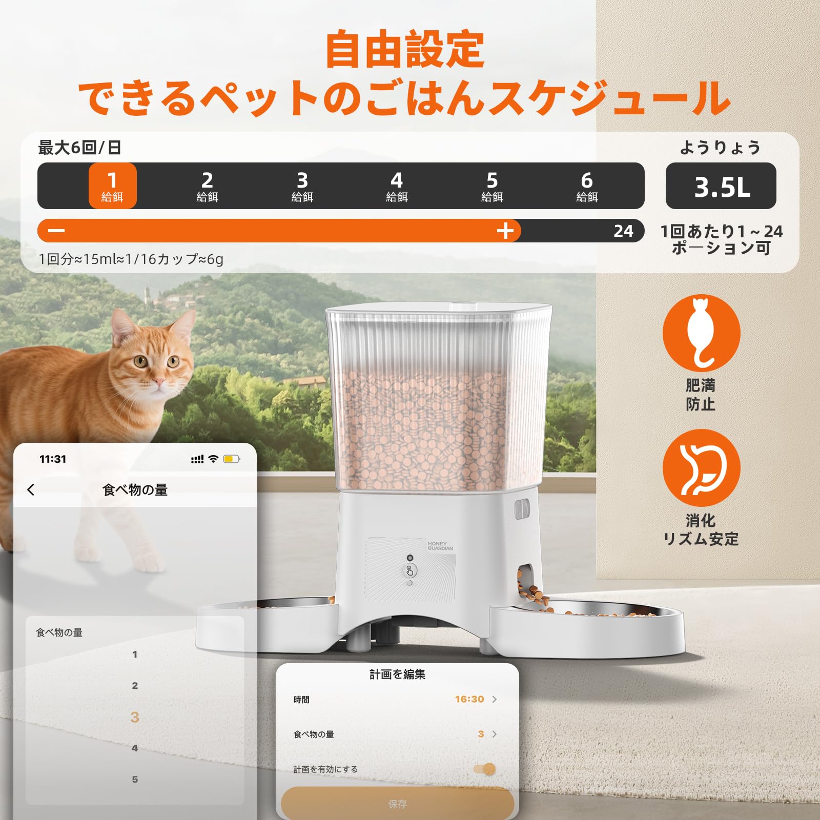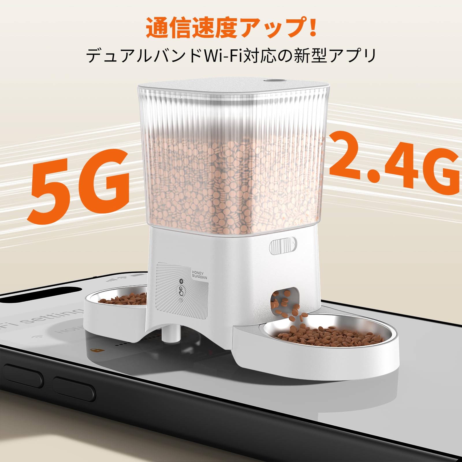 HoneyGuaridan 自動給餌器 猫 犬 小動物 2匹用 多頭飼い WiFi対応(5G/2.4G)スマホ連携 遠隔給餌 iOS Android対応 10秒録音 1日6食 定時定量 3.5L 大容量 タイマー対応 2WAY給電 停電対策 取り外し可能 乾燥剤付き 洗える ケージ取り付け 手動給餌 お手入れ簡単 日本語説明書 ブラック