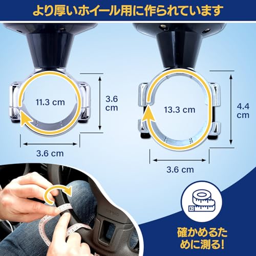 トラック用ステアリングホイールノブ - 太いステアリングホイール用XLドライブノブ - ヘビーデューティー、バン、ピックアップトラック、スポーツステアリングホイール用 - 大きな直径のステアリングホイール用に設計されたすべての操作を容易にします。 そのため、厚いトラックのハンドルにはうまくフィットしません。 幅広のフィット感で、大きなホイールにもフィットするステアリングボールで、簡単に操作できます。 トラックの運転手、配送ドライバー、運転手、大型ステアリングホイール(スポーツハンドル、バン、セミトレーラーなど)を運転する人に最適です。 この運転補助具があれば、ハンドルを握って操縦することはまた喜びになります。 拡張可能なネジアタッチメントの寸法(4.5インチ - 5.25インチ)のすべてのステアリングホイールに適合します。 ホイールを測って下さい。 ハンドルを保護し、ほとんどの大口径にフィットするゴム製パッドがいくつか含まれています。 簡単な組み立て。すべてが含まれています。詳細な説明書に従ってください。 ステアリングホイールの寸法を確認してください:クランプの幅は1.45インチ (当社の標準モデルでは1.1インチと比較)。 このXLモデルまたは当社の標準車の運転ノブを選択する必要があるかどうかを確認するには、ハンドルを測定してください。 フルイドベアリング: 流動性の高い最高品質のベアリングを選びました。 スラックスをとらないので、安全にコントロールし操作できます。 優れたコントロールとかつてない精度をお楽しみください。 30日間返金保証、今すぐご注文ください。