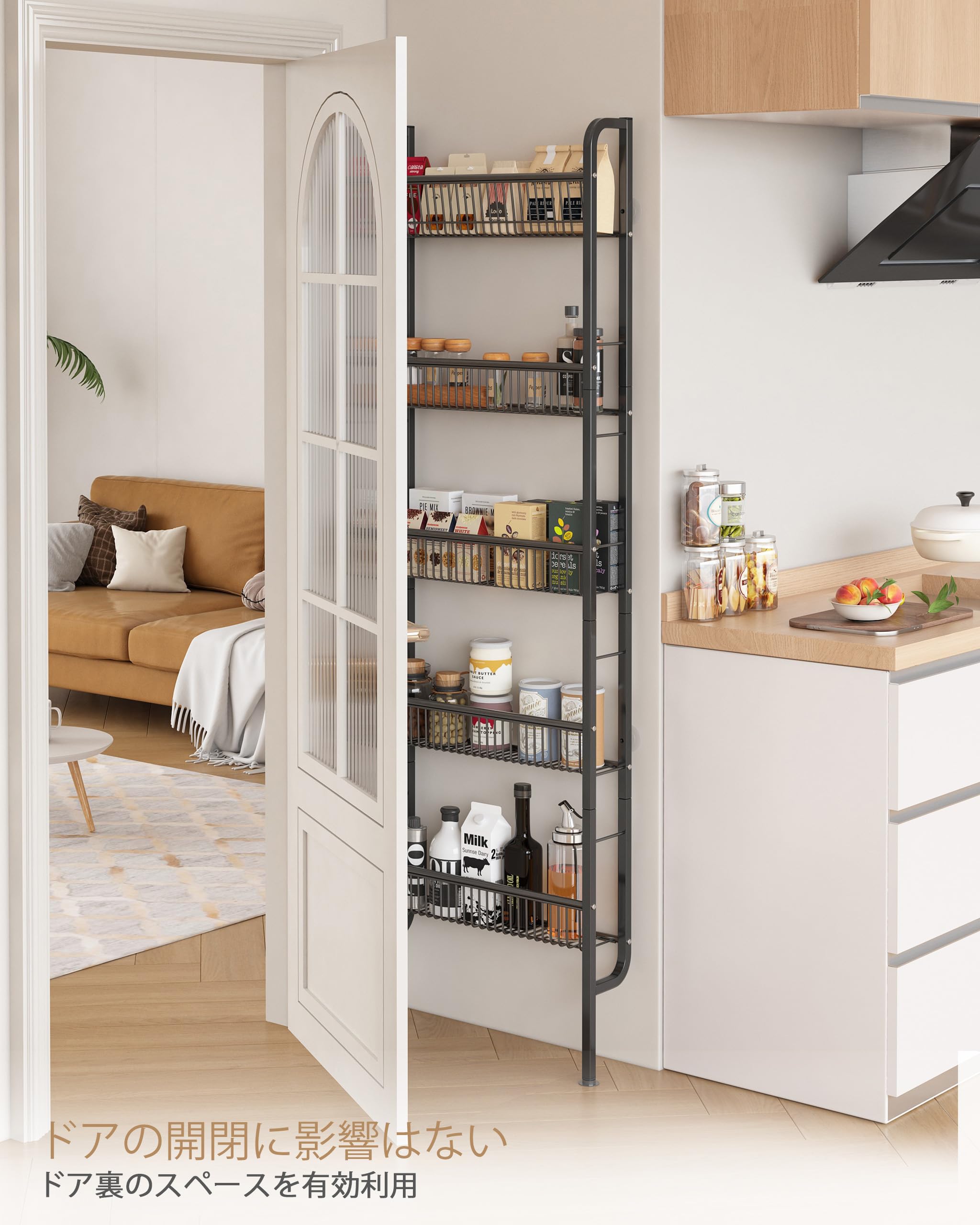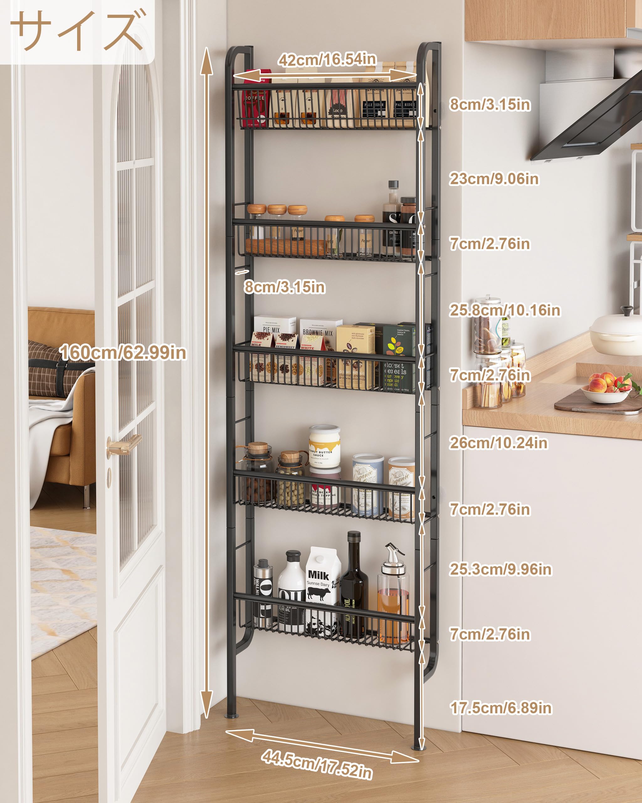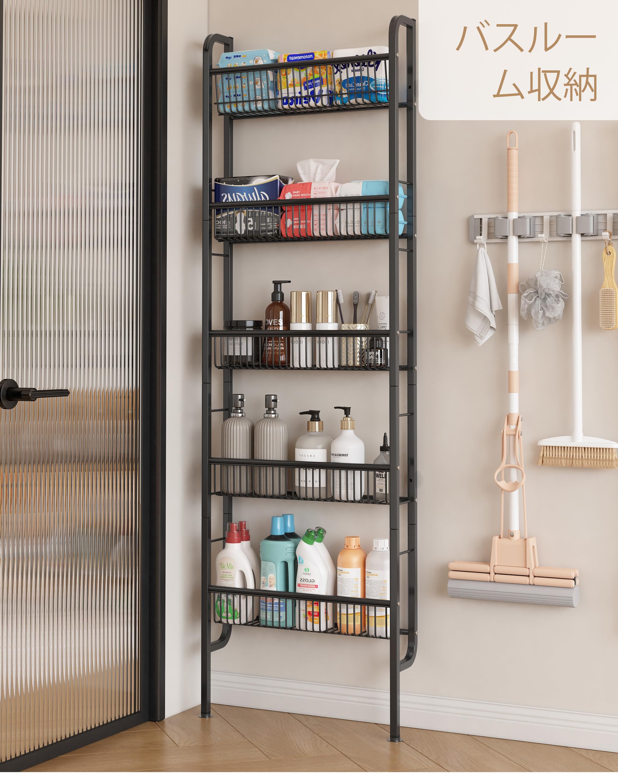BAOYOUNI 伸縮式 つっぱり棚 スリム 突っ張り棚 つっぱり棒 棚 伸縮棚 突っ張りステンレス 黑 取付幅74-127.7cm