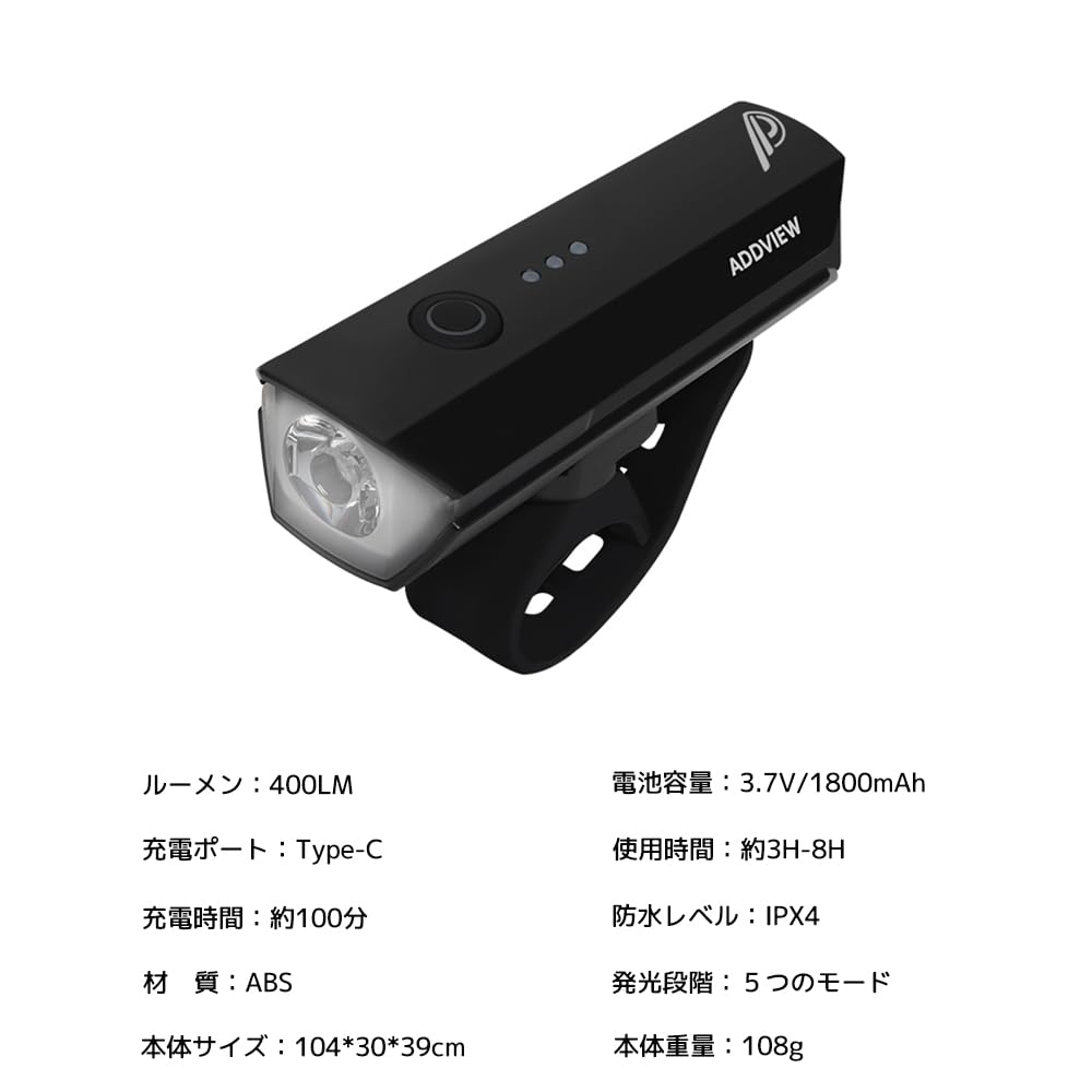 自転車ライト4段階調光 高輝度 小型 軽量 LEDライト 自転車ヘッドライト 充電式 ライト IP45防水 防振 取り付け簡単 防災 地震 停電 懐中電灯兼用