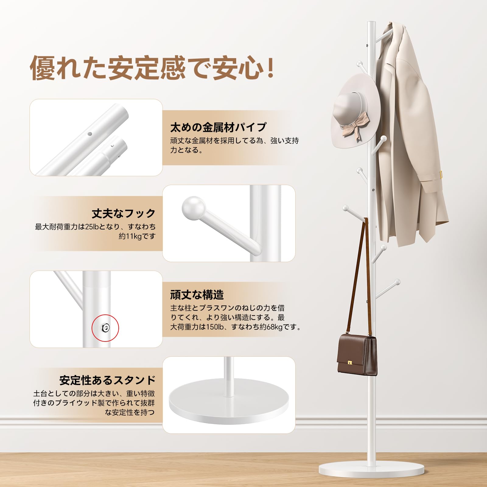 Aikenn ハンガーラック パイプハンガー コート掛け 洋服ラック ガーメントラック 室内物干し 物干し竿 洋服掛け 衣類ラック 物干しスタンド 服掛けるラック 衣類収納 自立型 頑丈 大容量 メタル おしゃれ 組立簡単 (1段)