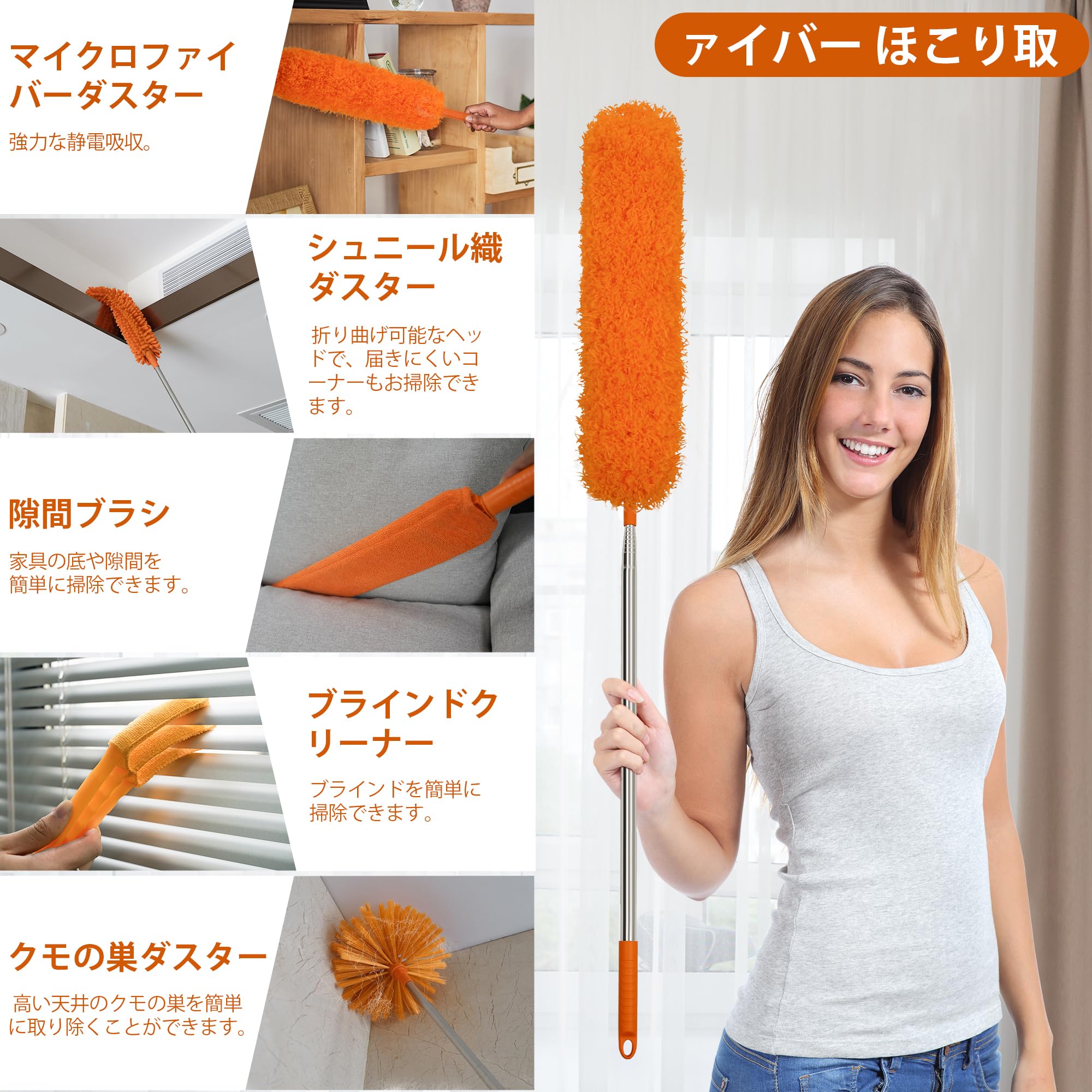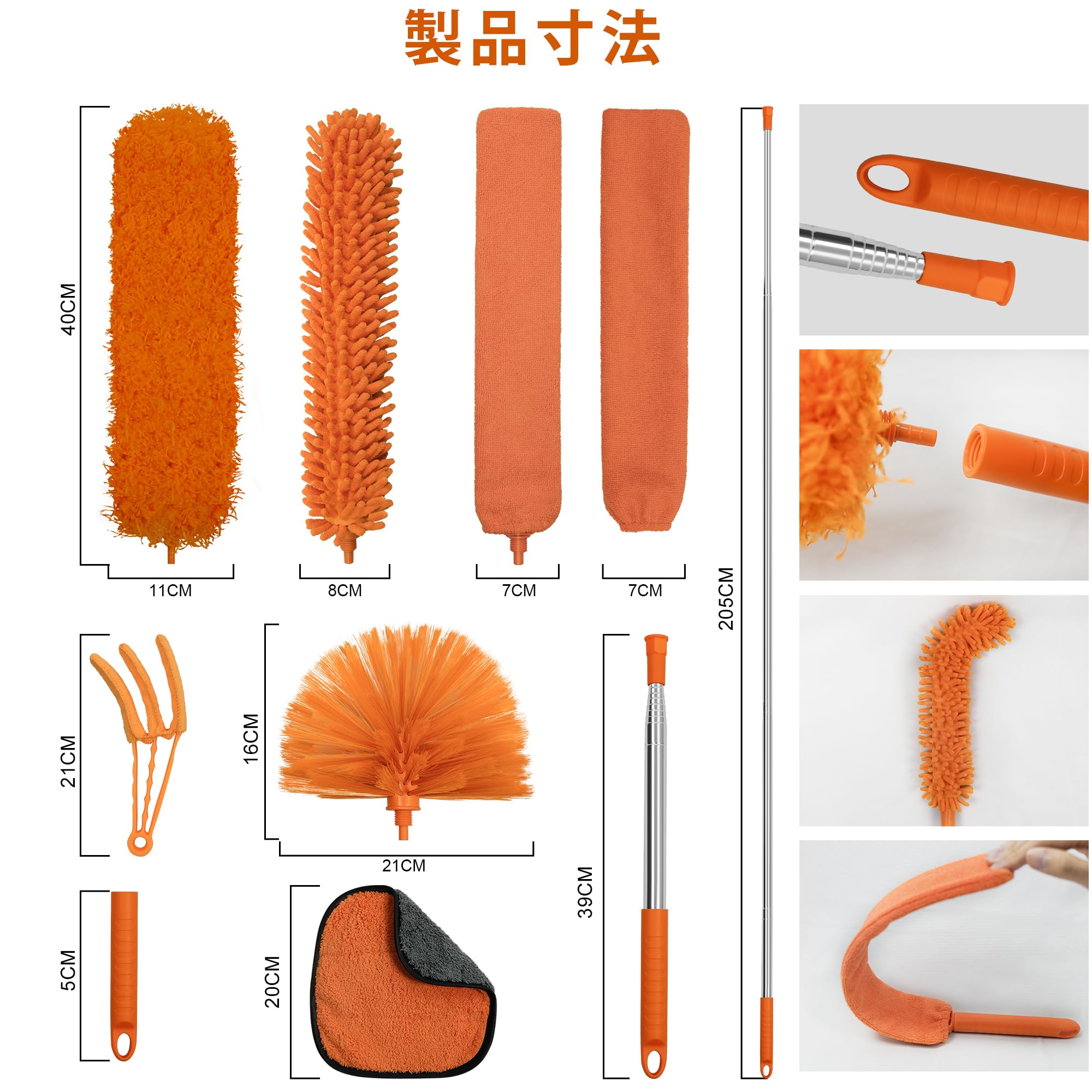 JEHONN ほこり取りロングポール&ショートポール はたき ハンディモップ 使い捨 交換用シート20枚付き, 360°埃取り ハンディ デザイン 車/家/テレビ/コンピューター/ブラインドに適用