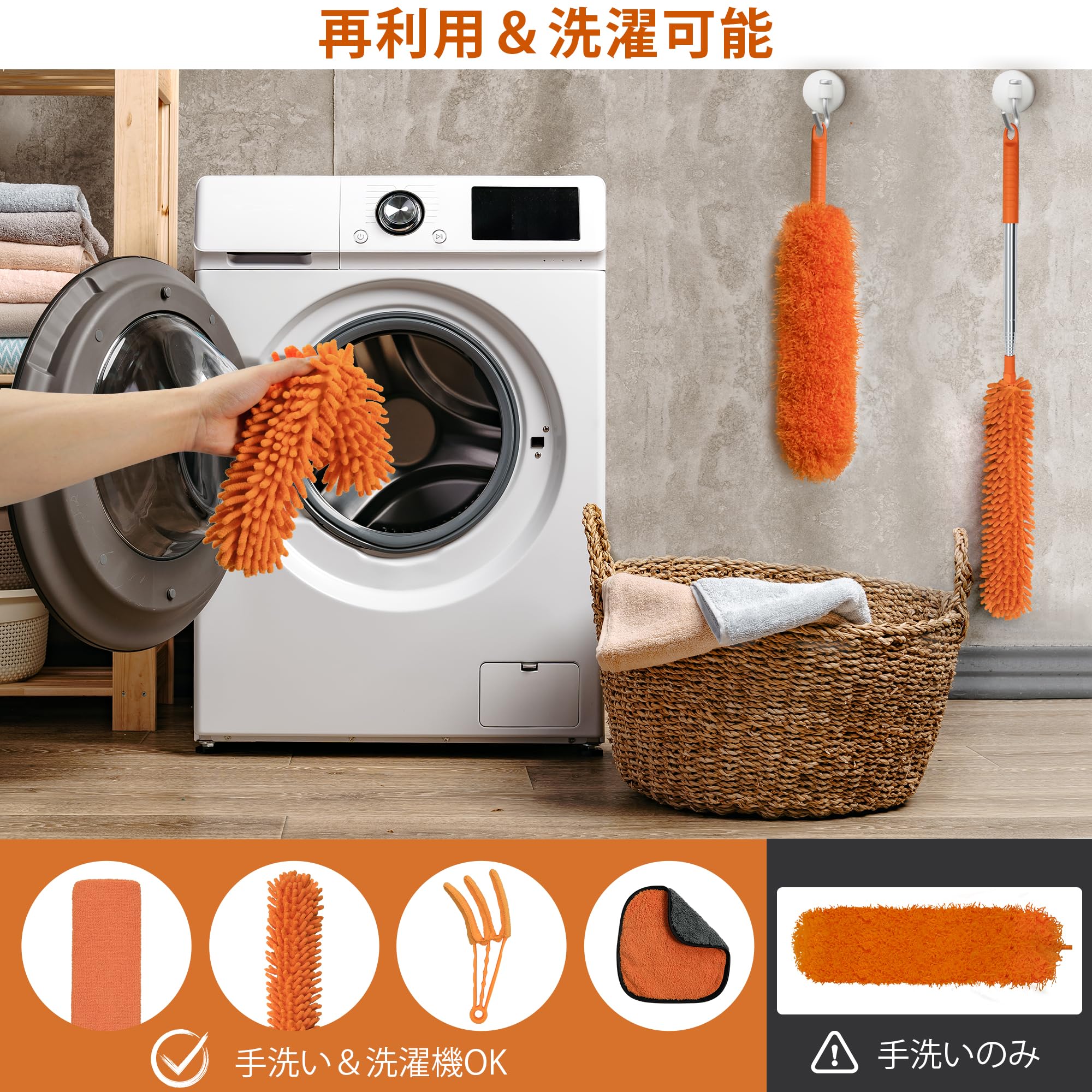 JEHONN ほこり取りはたき ハンディモップ ポール付き254cm伸縮自在洗える 再利用可能 折り曲げ可能 ダスター 扇風機、高天井、テレビ、ブラインド、車の掃除用
