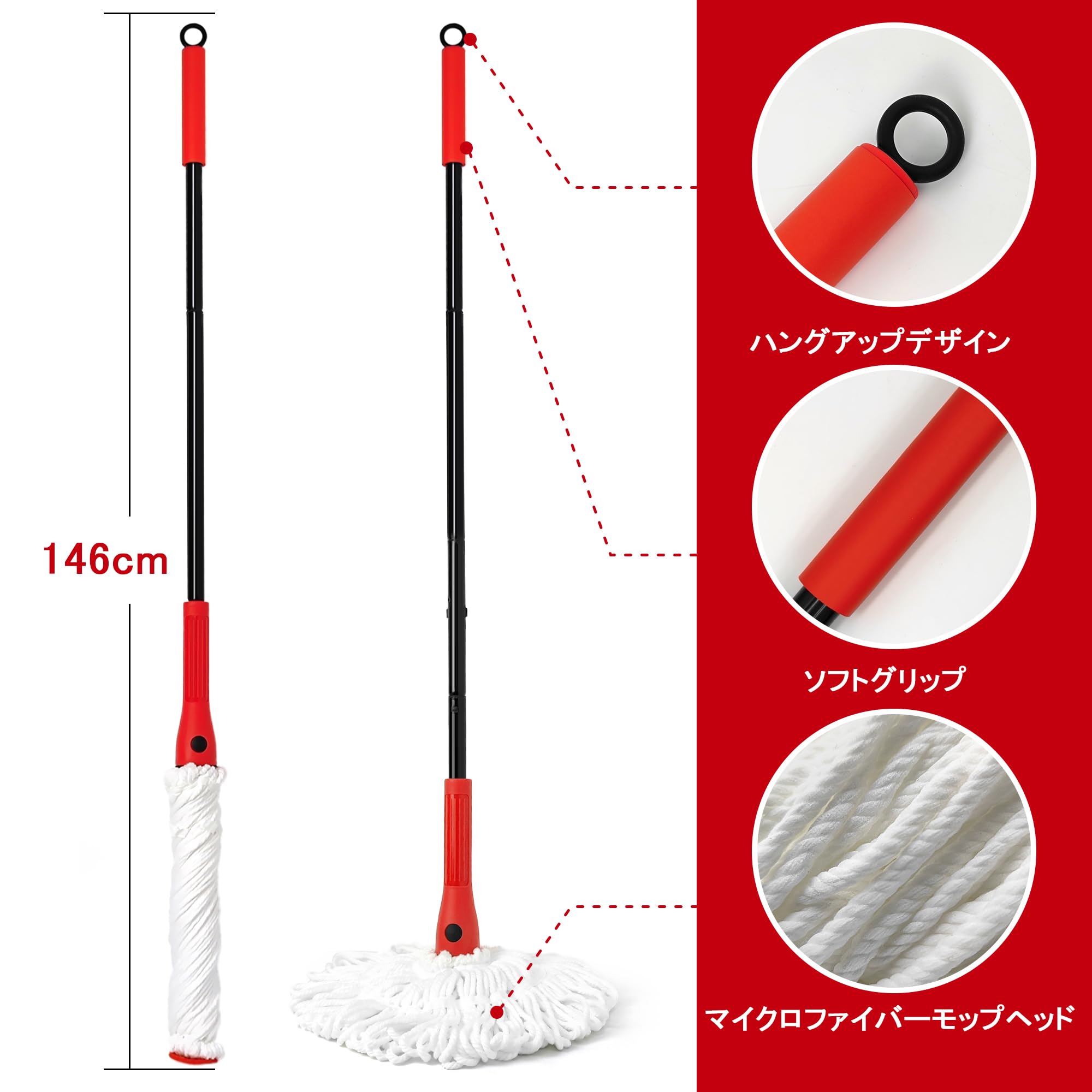 JEHONN 乾湿両用モップ 絞り器付き, 長さ146 cm 回転モッ プ手を汚さない 収納便利, モップ フローリング は硬木タイルの大理石家庭のオフィスキッチンを清潔にするために使用されている(赤)