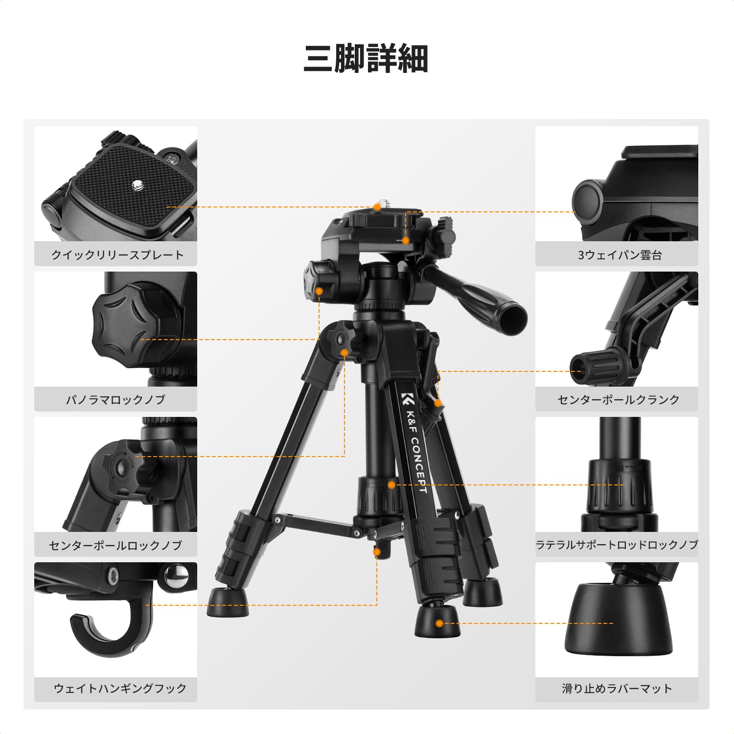 カメラ三脚 K&F CONCEPT カーボン三脚 カメラスマホ 三脚 1.3kg超軽量 コンパクト 5伸縮 173cm 一脚可変式 耐荷重5kg 中心軸反転 360度回転 油圧ヘッド付け一眼レフカメラ トラベル用O255C4+FH-03