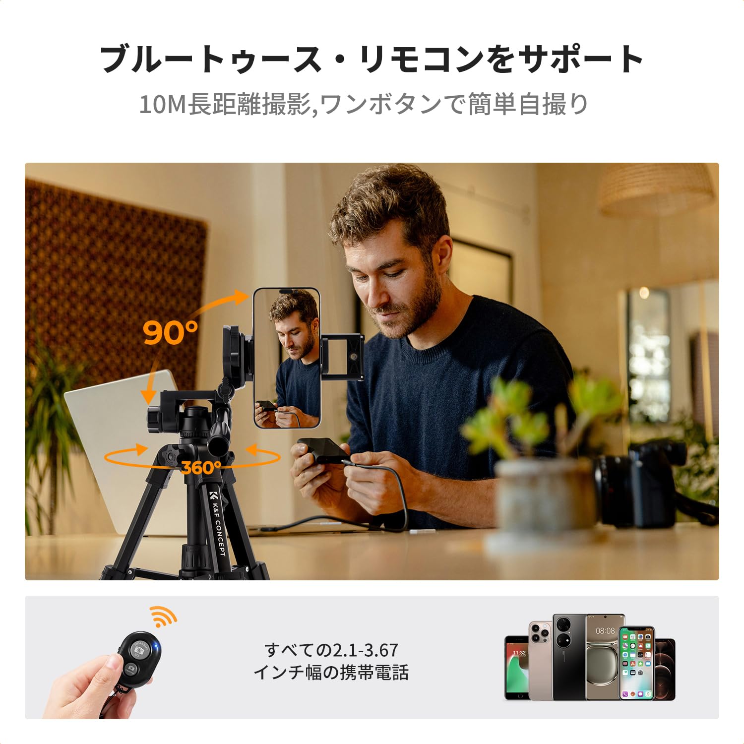 UBeesize 163cm三脚 スマホ/カメラ三脚/タブレット三脚 Bluetoothリモコン ビデオカメラ 一眼フレ 3WAY雲台 さんきゃく スタンド軽量 iPhone/Android/スマホ全機種適用(長163cm) ブラック