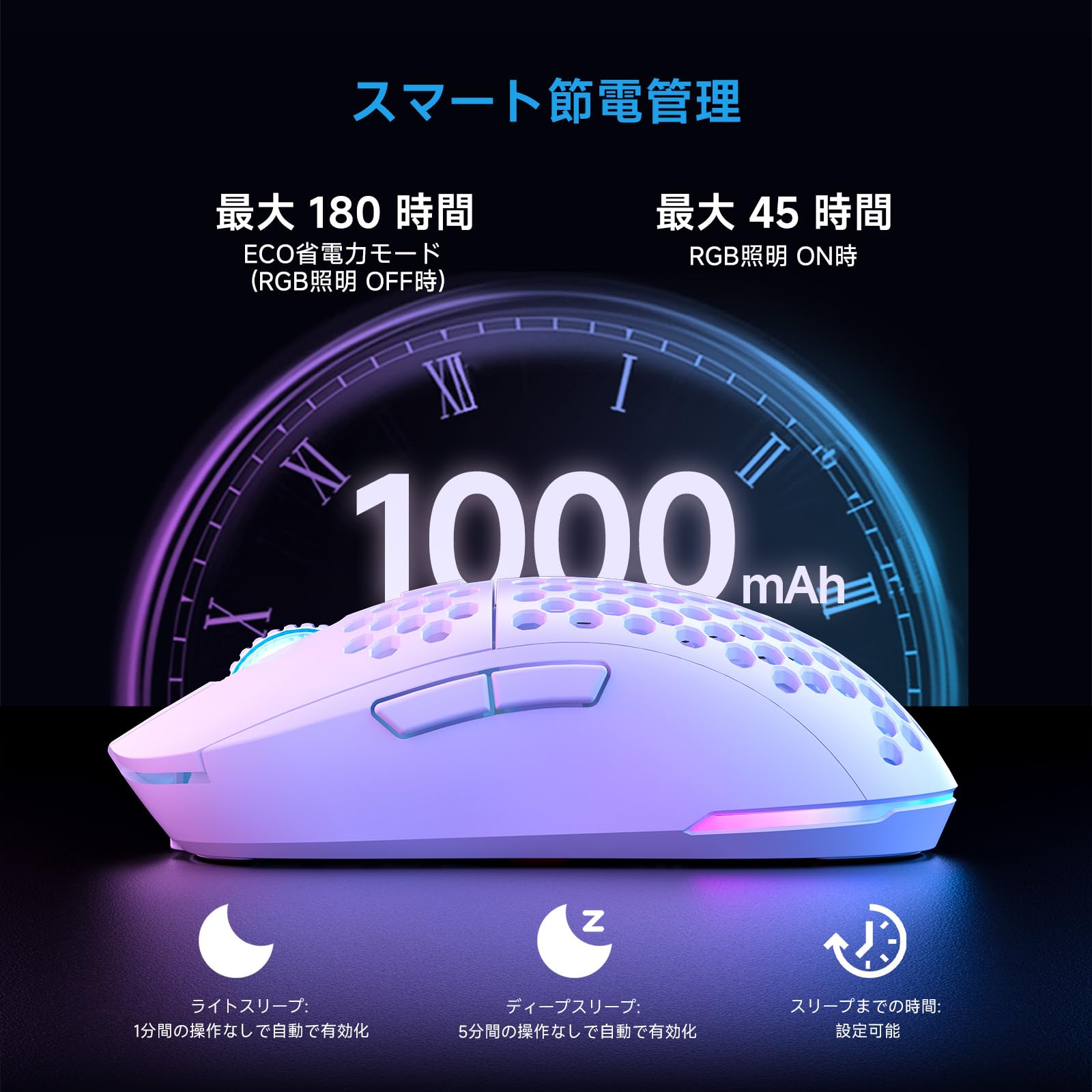 DELUX M700PRO ワイヤレスゲーミングマウス、59g軽量、PAW3395センサー26000DPI、クリック寿命8000万回 、バッテリー寿命90時間、デュアルモード有線/無線2.4G、1000Hzポーリングレート(ホワイト)