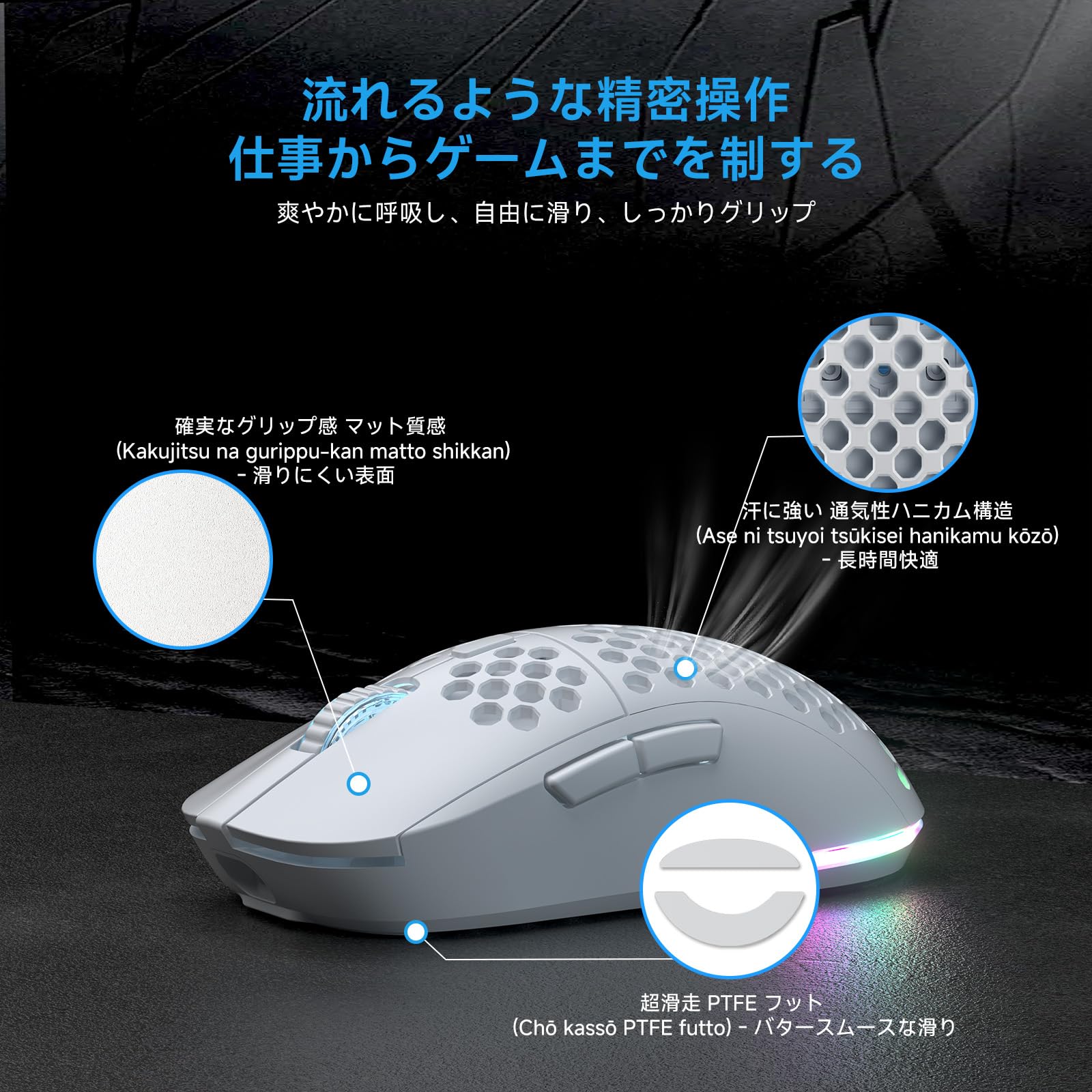 DIERYA Falcon M1 ワイヤレスゲーミングマウス 無線 24000DPI 180時間駆動 超軽量90g 6ボタンカスタマイズ RGB 2.4G/BT5.2/USB-C 有線 ホワイト