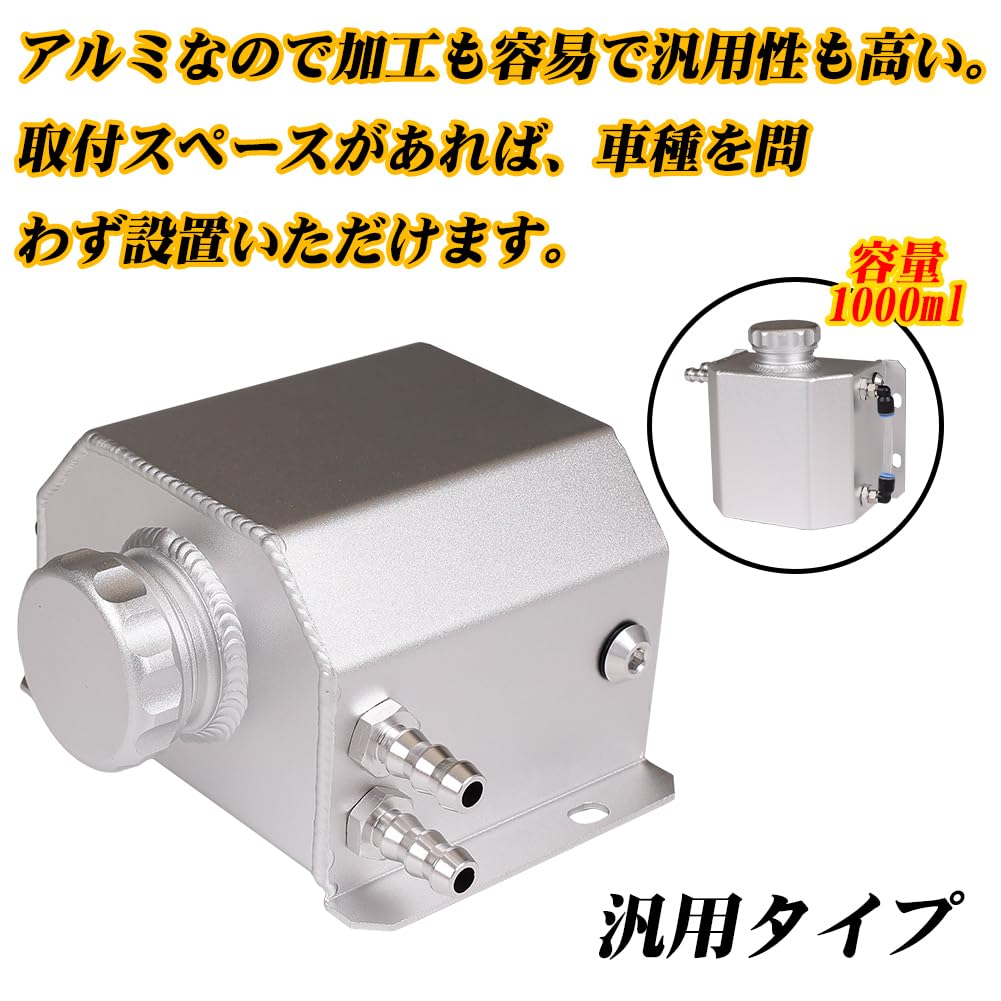 アルミ製 リザーバー タンク クーラント リザーブタンク オーバーフロー タンク オイルキャッチ ラジエータ 拡張合金タンク (シルバー)