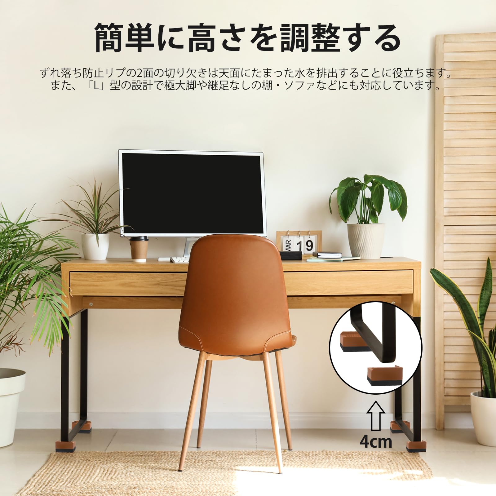 Uping テーブル・ ベッドの高さ調節が簡単にできる ベッドの高さをあげる足 4個セット 高さを上げる 高さ調節脚 こたつ 継足し 継ぎ足 テーブル脚台 高さ調整 暖房器具 (耐荷重1000kg) ブラウン
