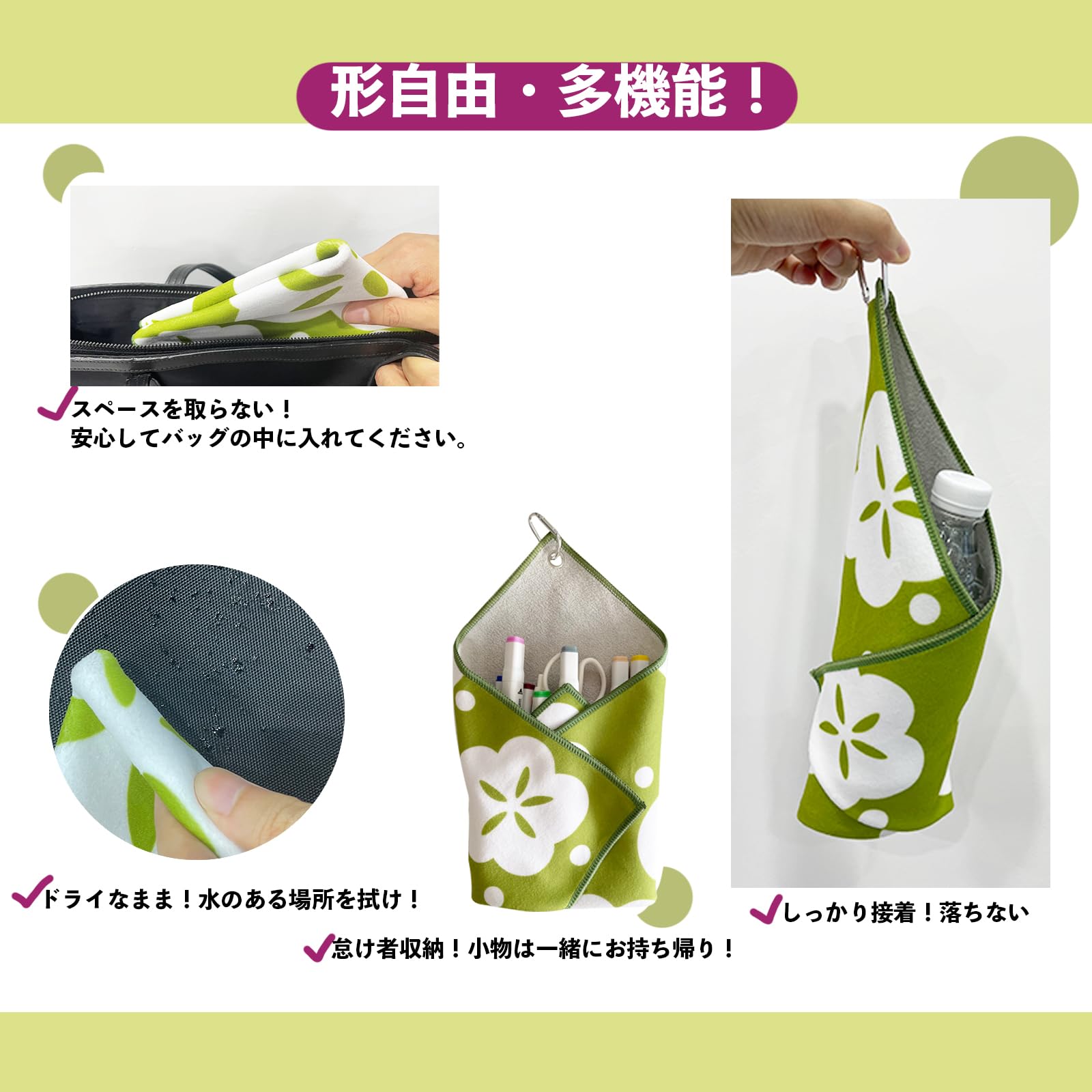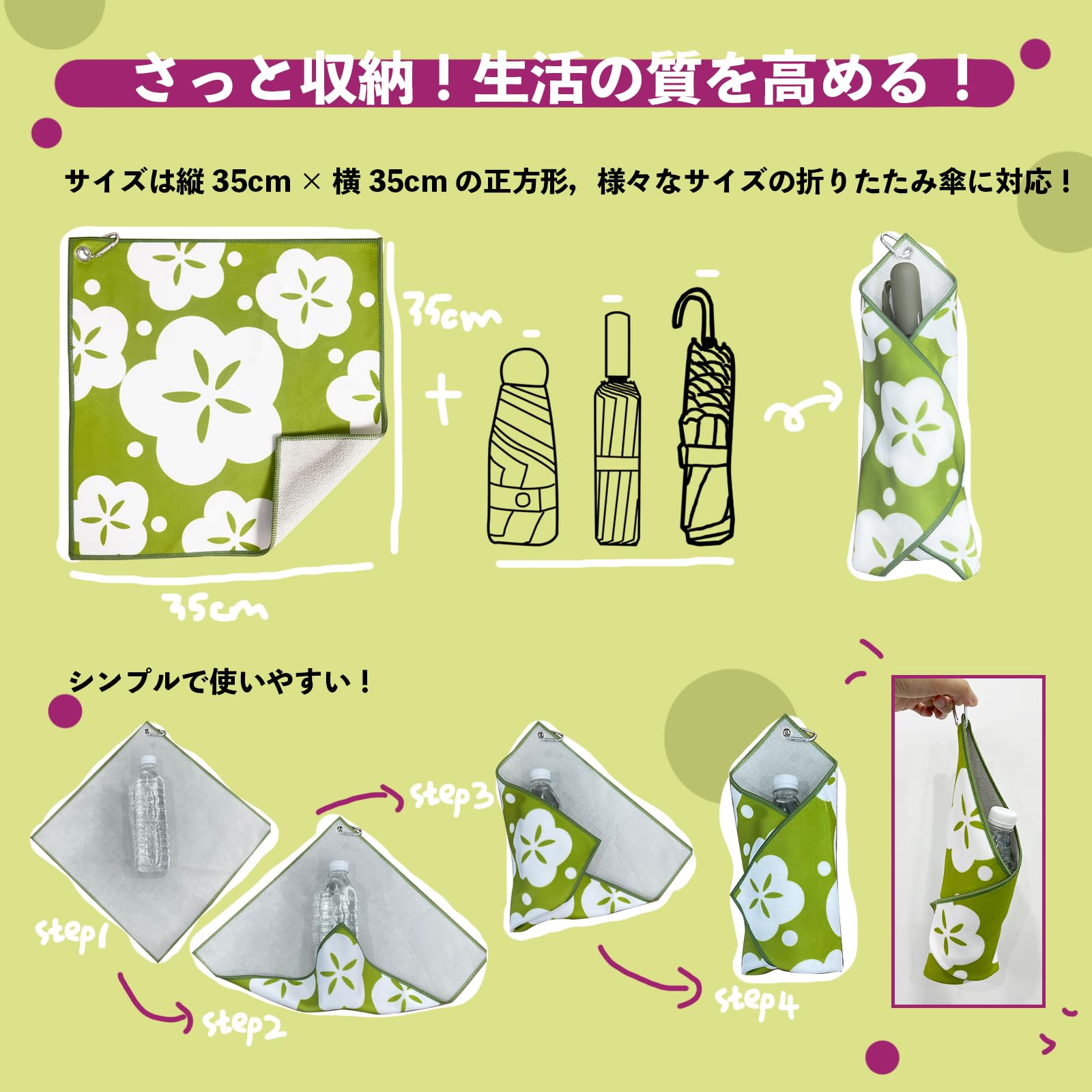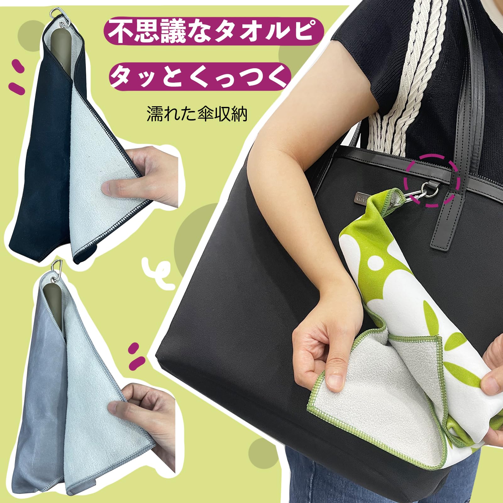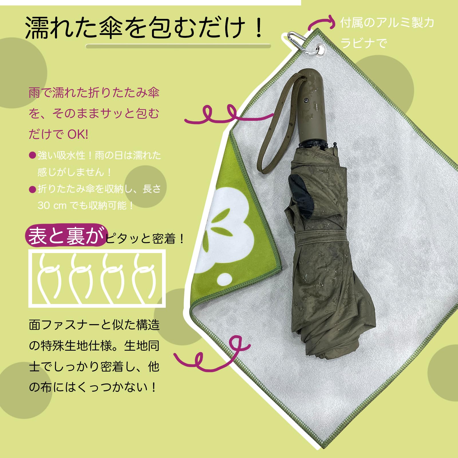 アルファックス 傘カバー 傘ケース 折りたたみ傘 吸水 縦35×横35cm ピタッとくっつく不思議なタオル ピッタオル ミモザ柄 くっつきタオル 傘袋 レイングッズ 吸水 ペットボトルカバー 液晶クリーナー くっつく タオル (青草, 35x35cm)