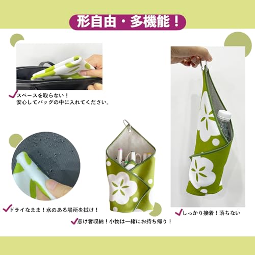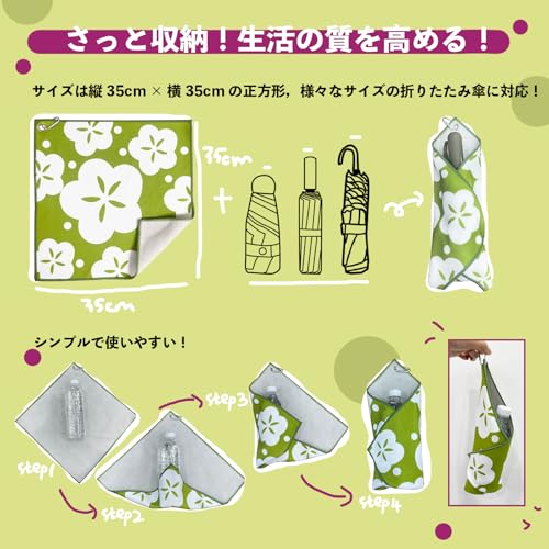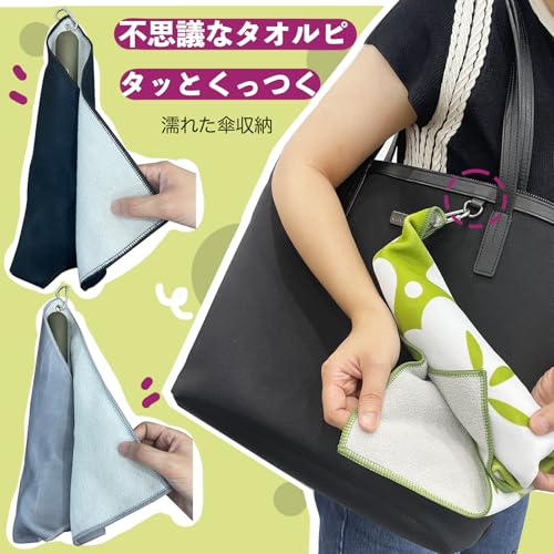 アルファックス 傘カバー 傘ケース 折りたたみ傘 吸水 縦35×横35cm ピタッとくっつく不思議なタオル ピッタオル ミモザ柄 くっつきタオル 傘袋 レイングッズ 吸水 ペットボトルカバー 液晶クリーナー くっつく タオル (青草, 35x35cm)