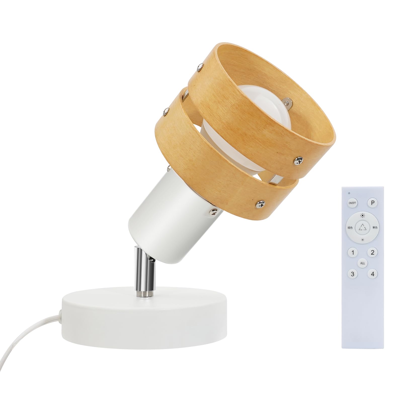 Aiwode ウォールランプ 木の色木製の円 調光の電球 E26対応 360度回転 壁掛け照明 スイッチ付き リモコン対応 高級 調光調色 目に優しい 節電 省スペース設計 寝室 ベッドサイド デスクライト 読書用 高級レストラン照明 植物育成ライト対応 白 1個