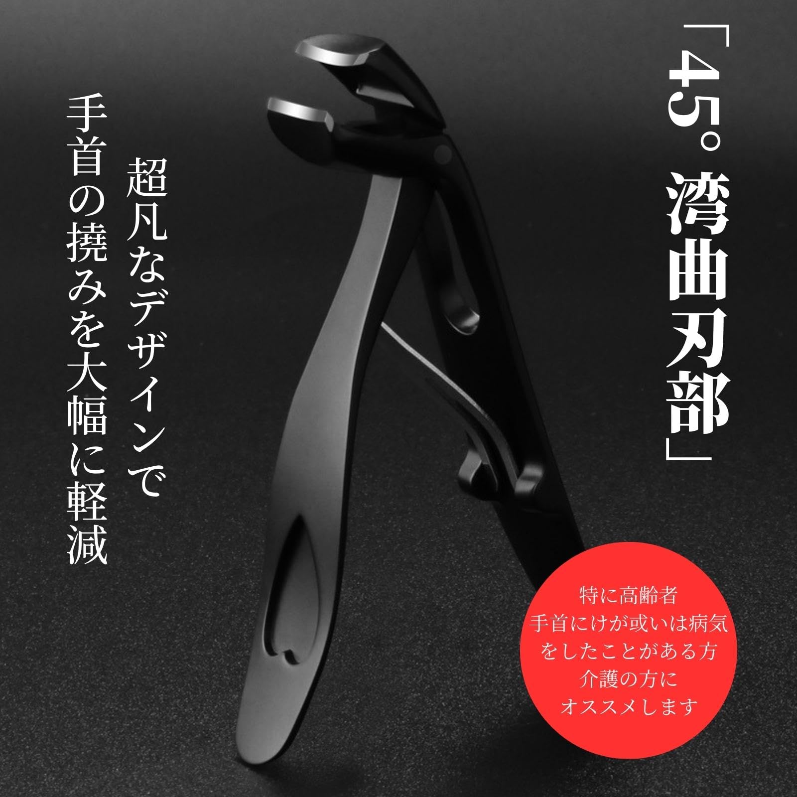 【正規品】爪切り 湾曲刃「手首・腰の撓み軽減」高級 足用 両面切れ 高齢者 KINCOSY ステンレス刃物鋼 ガラス爪ヤスリ 金属収納ケース (黒色)