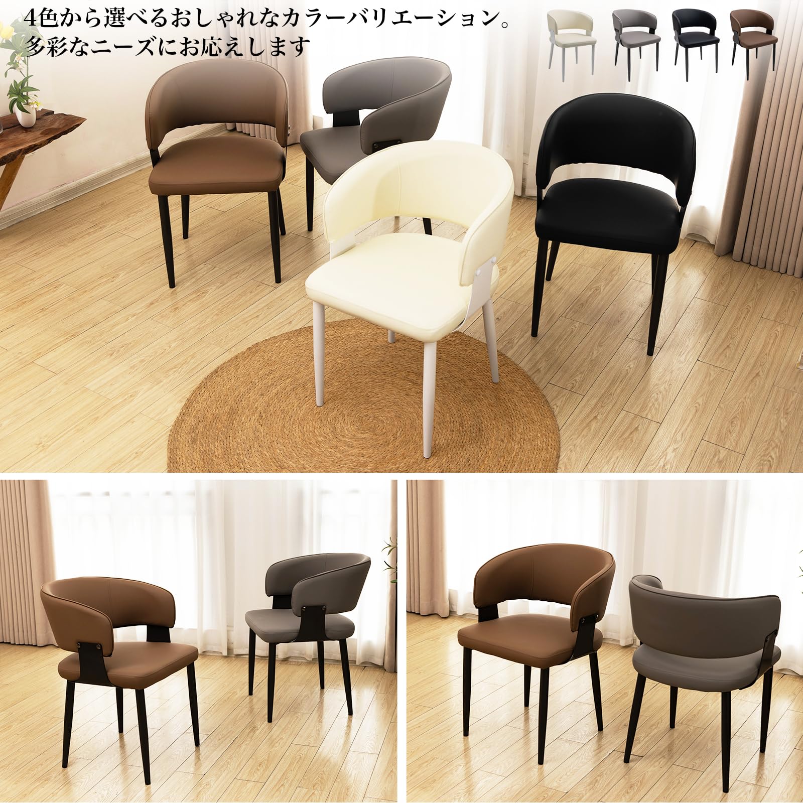 Murongun ダイニングチェア 2脚セット 北欧風 モダンデザイン 肘付き 食卓椅子 PUレザー 肉厚クッション おしゃれ 椅子セット キッチン リビング用 背もたれ付き 組立簡単 安定性 滑り止め付き ホワイト