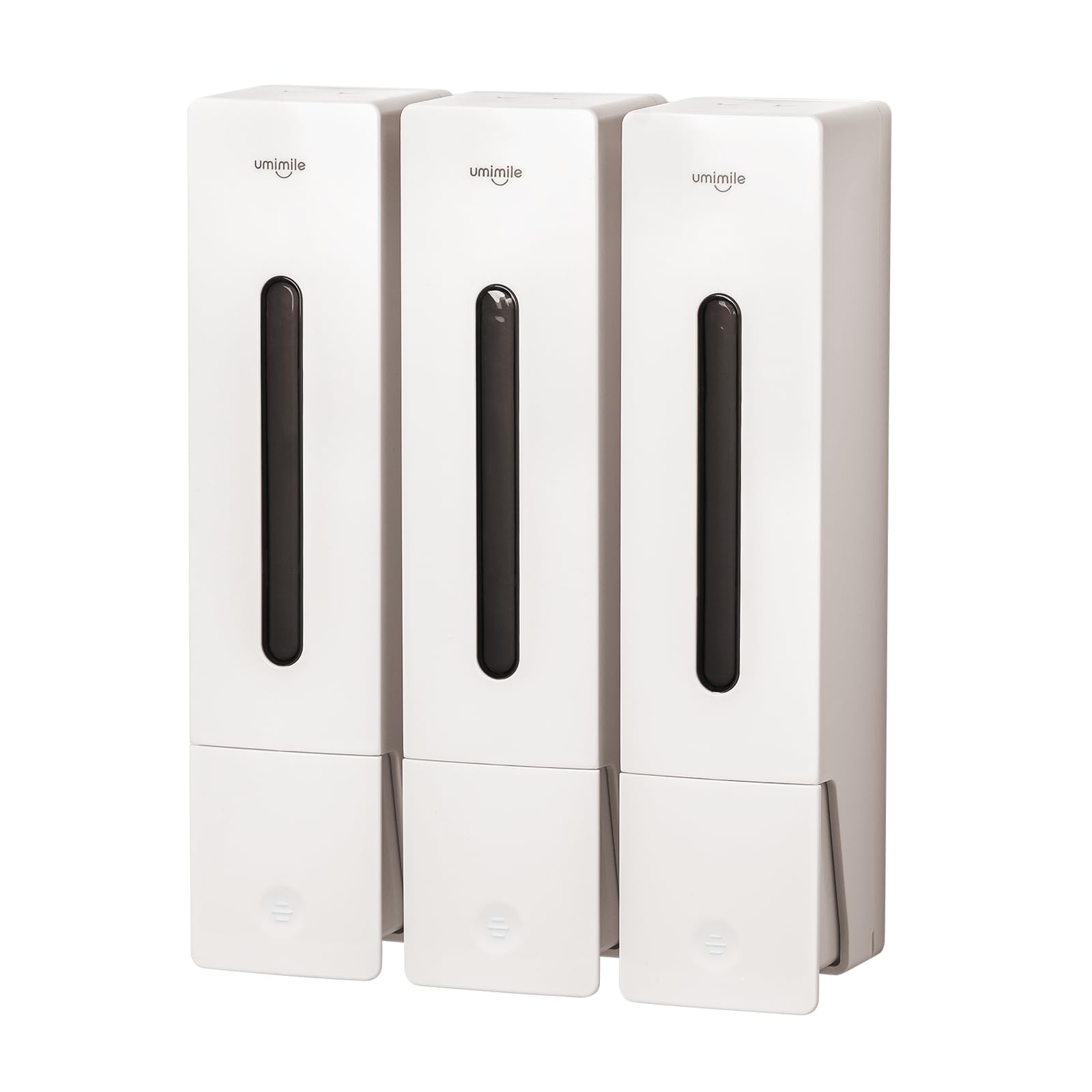 Umimile シャンプーディスペンサー マグネットディスペンサー 大容量 壁掛け 400ml 詰め替えボトル 簡単取り付け 洗面所 浴室などに適用 (3, ホワイト)