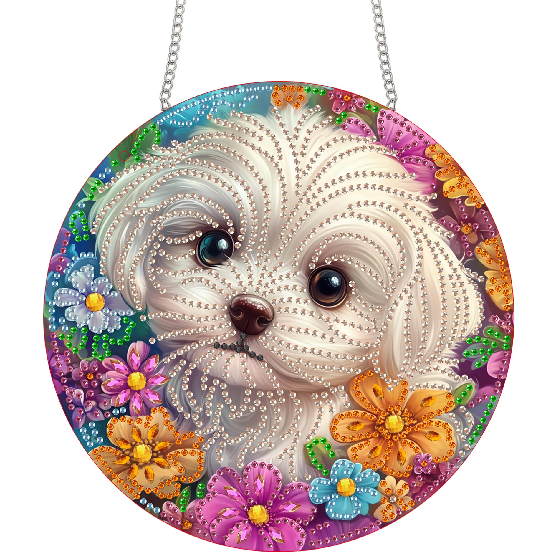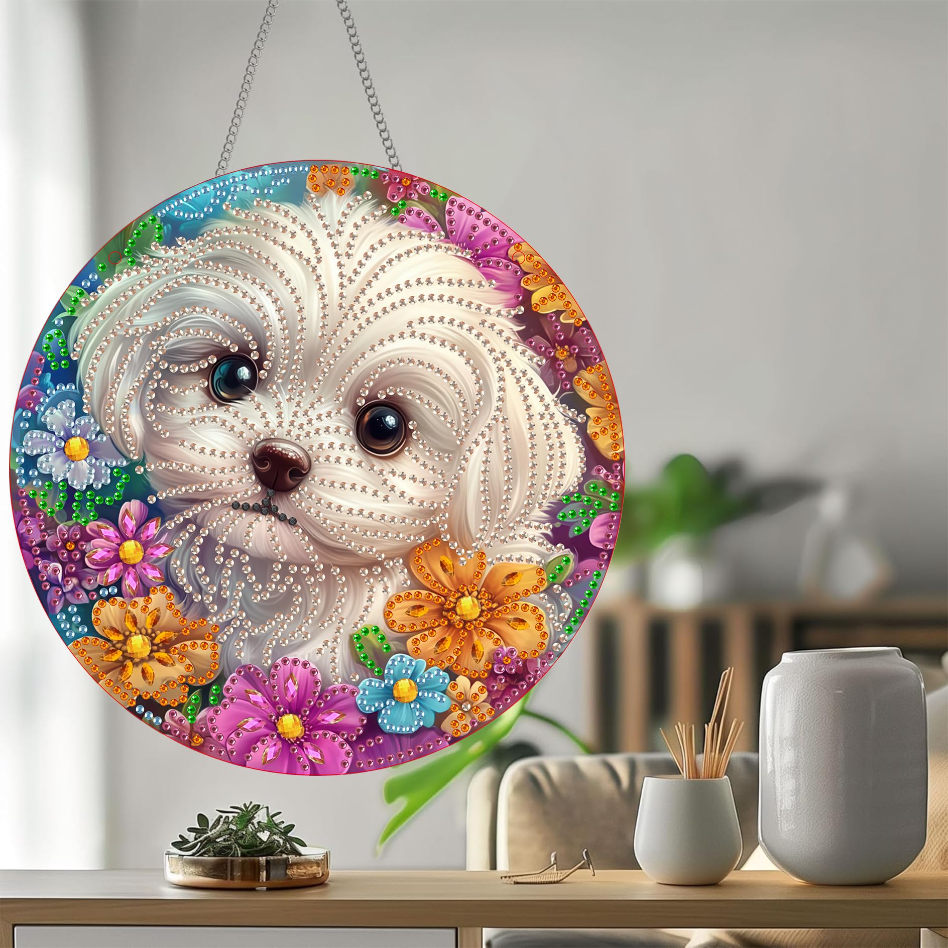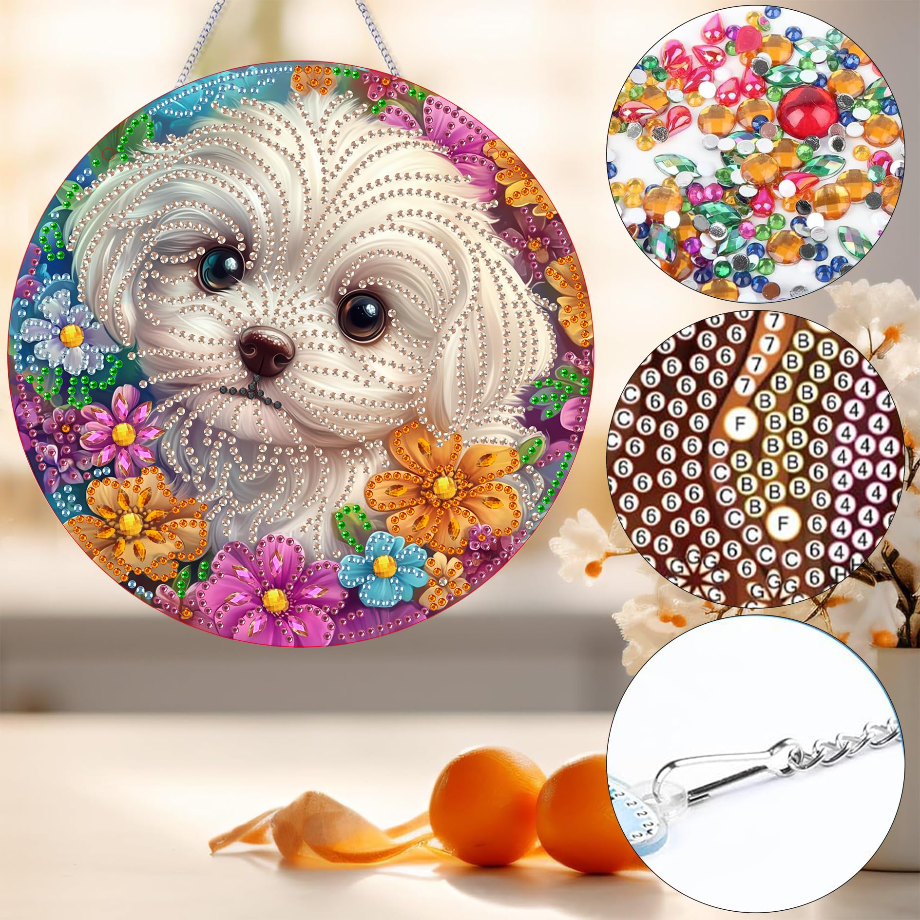 Bimkole ダイヤモンドアート 犬 ハンギングキット - 大人のための5Dダイヤモンドアートキット、DIY ペットの動物 リスタルアートハンギングサイン、アクリルクリスタルアート吊り下げオーナメント - 壁掛け用、家庭・庭・玄関装飾用 20x20 cm