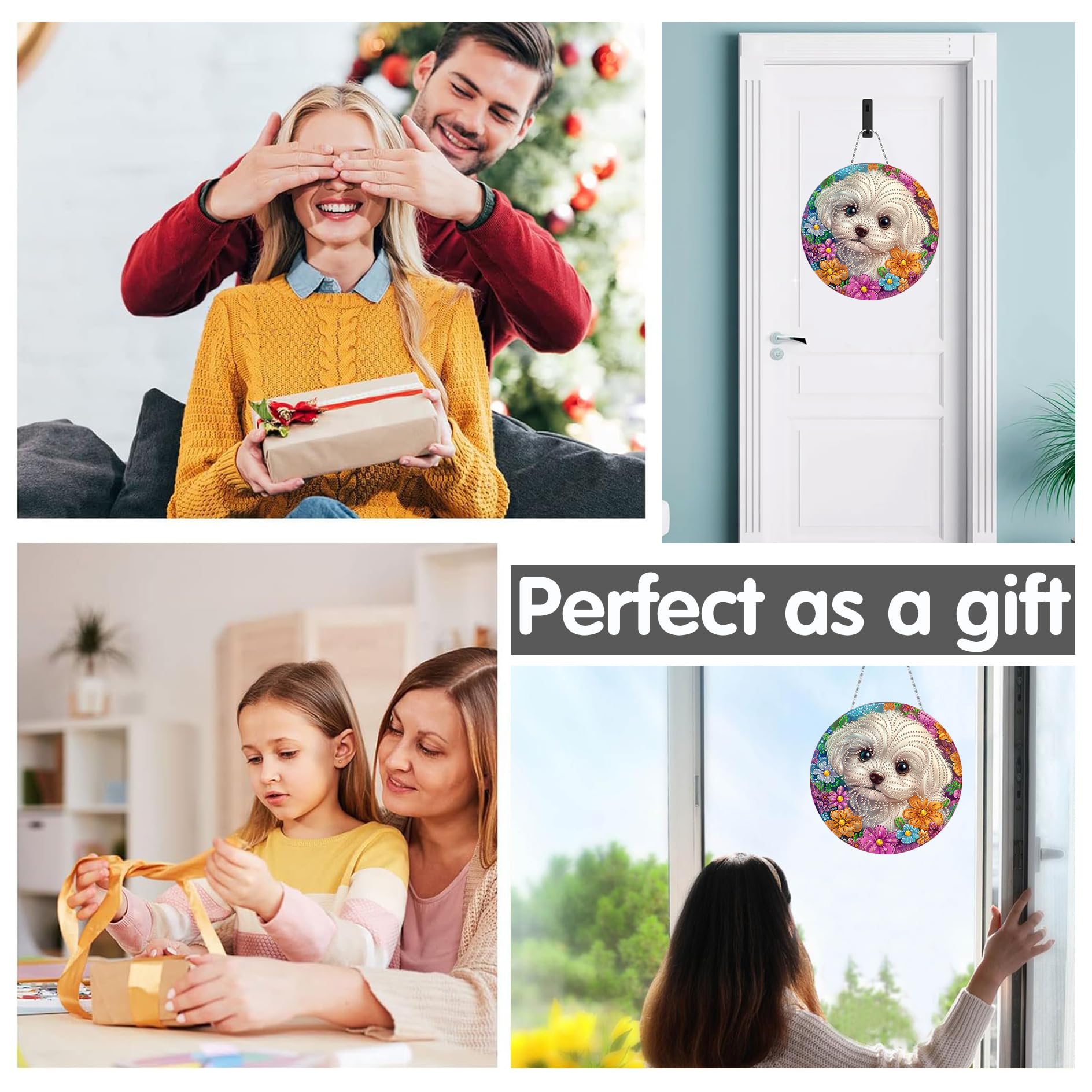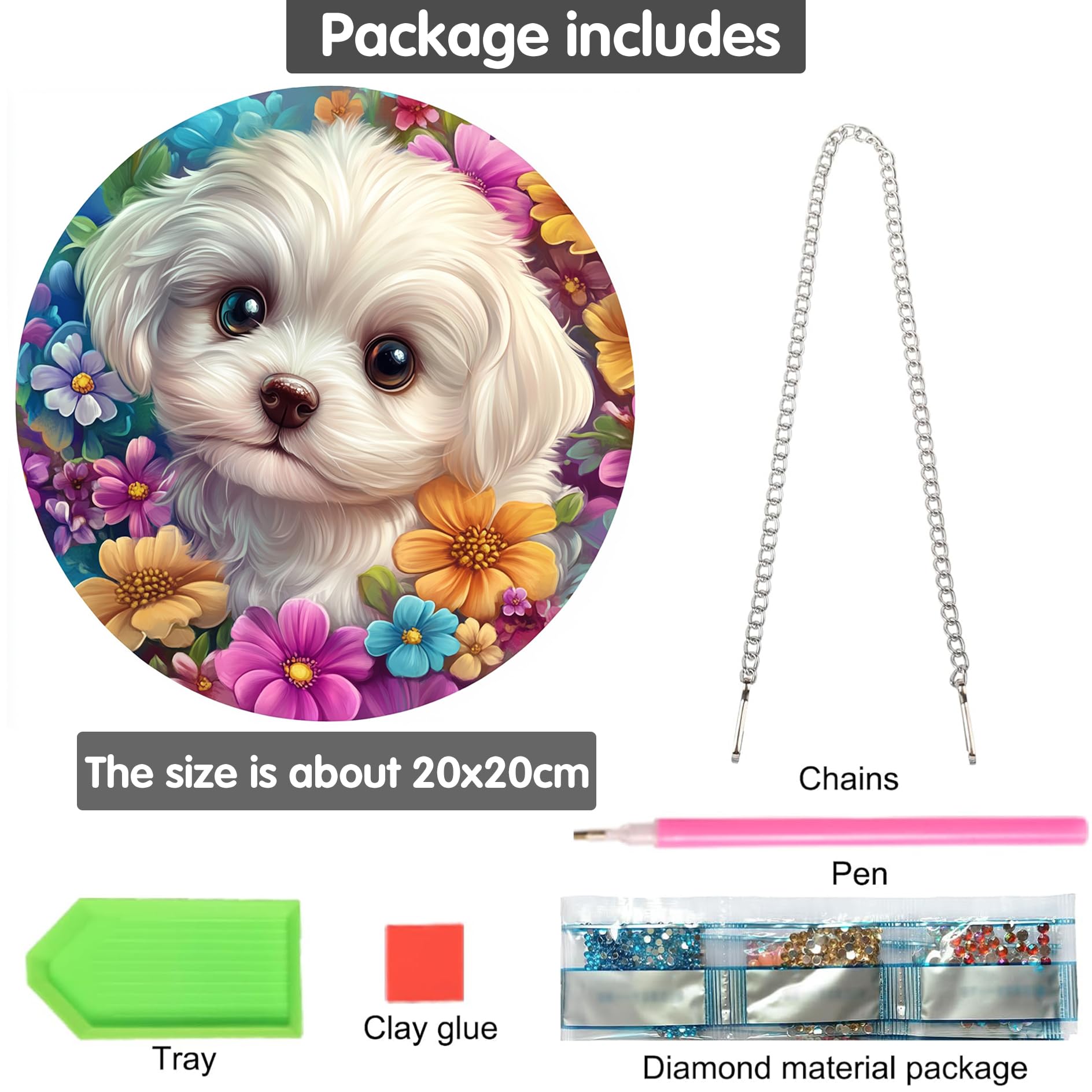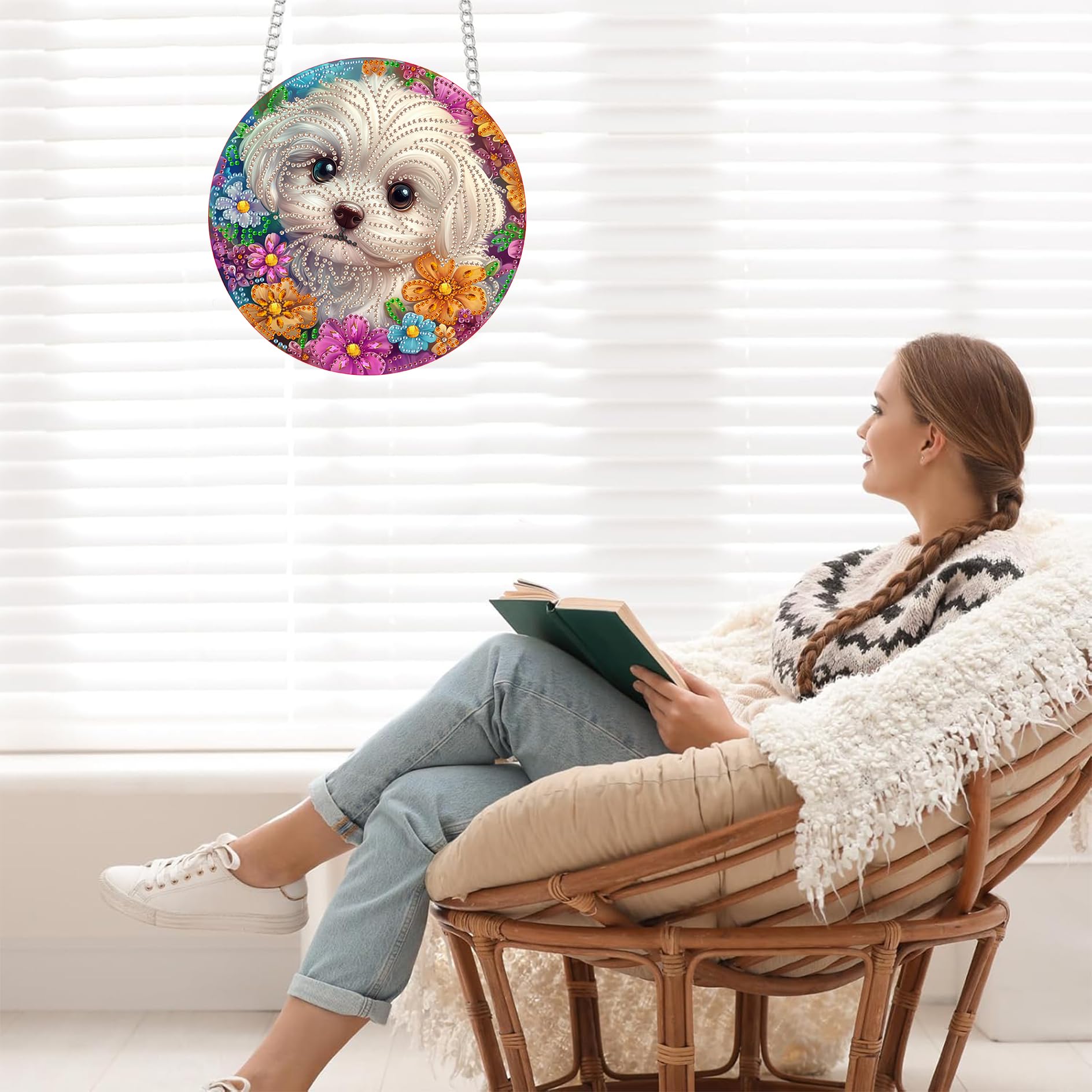 Bimkole ダイヤモンドアート 犬 ハンギングキット - 大人のための5Dダイヤモンドアートキット、DIY ペットの動物 リスタルアートハンギングサイン、アクリルクリスタルアート吊り下げオーナメント - 壁掛け用、家庭・庭・玄関装飾用 20x20 cm