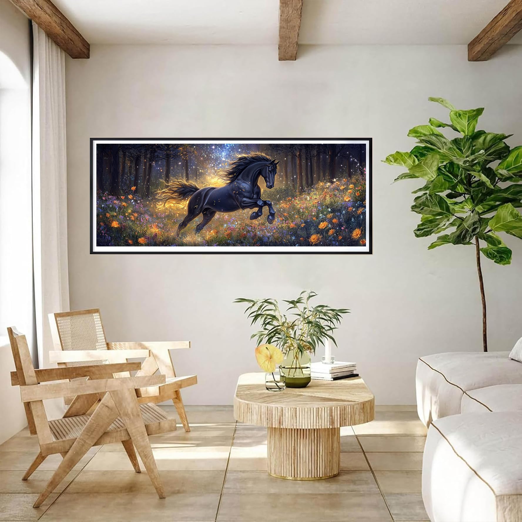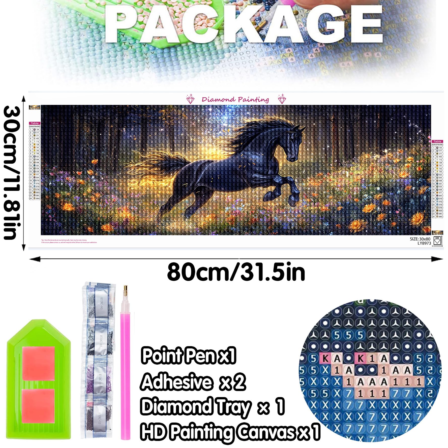 Bimkole 5D 大きい ダイヤモンドアート 馬 ダイヤモンドアート キット 絵画 草 クロスステッチ フルドリル クリスタル ラインストーン 刺繍 DIY アート クラフト ホーム ウォールデコ 30x40 cm