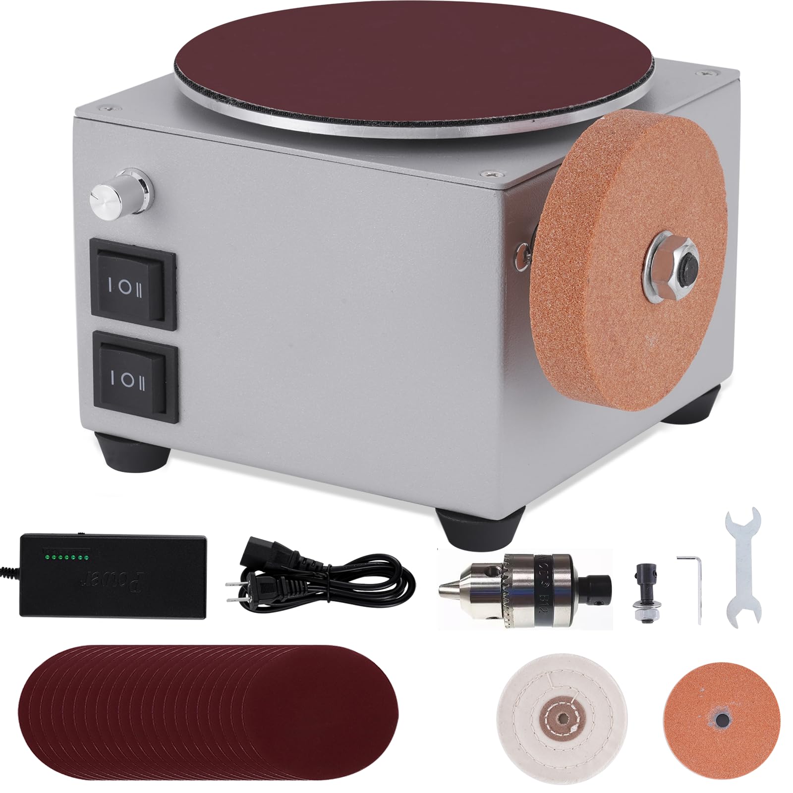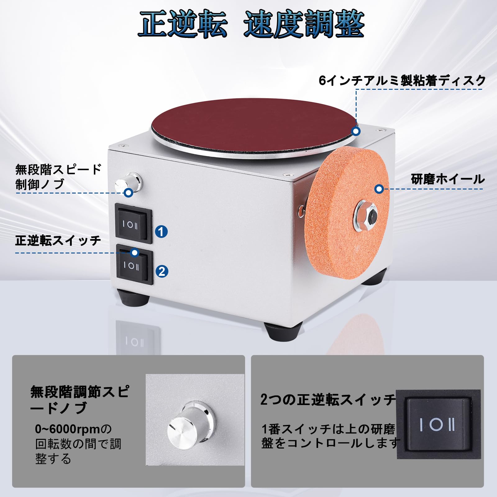 MXBAOHENG ディスク研磨機 電動 小型 卓上ミニグラインダー 正逆回転 0-6000rpm速度調整 家庭用 DIY 木材 金属 包丁研磨 刃研ぎ 電動研ぎ器 砥石研削 リューター作業
