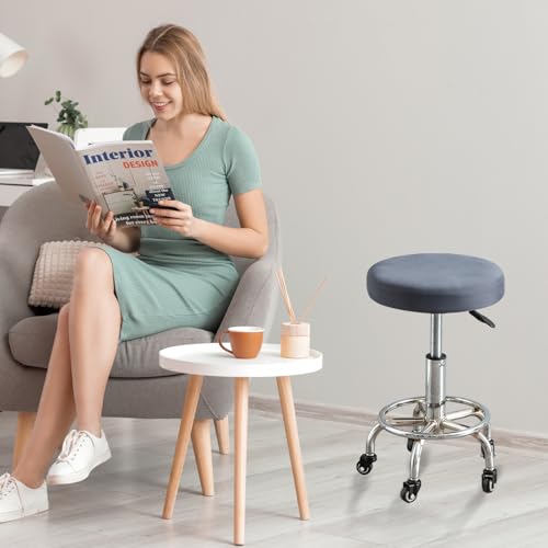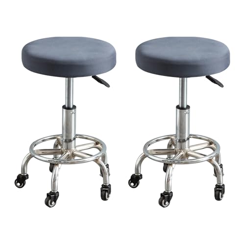 スツールカバー 丸 椅子カバー 丸 28-40 cm 2枚入 取り付け簡単 伸縮素材 汚れ防止 キズ防止 診察椅子 回転椅子 バーチェア エステスツール カットチェアー 美容室 ネイル サロン バー 食堂 キッチン (ダークグレー)