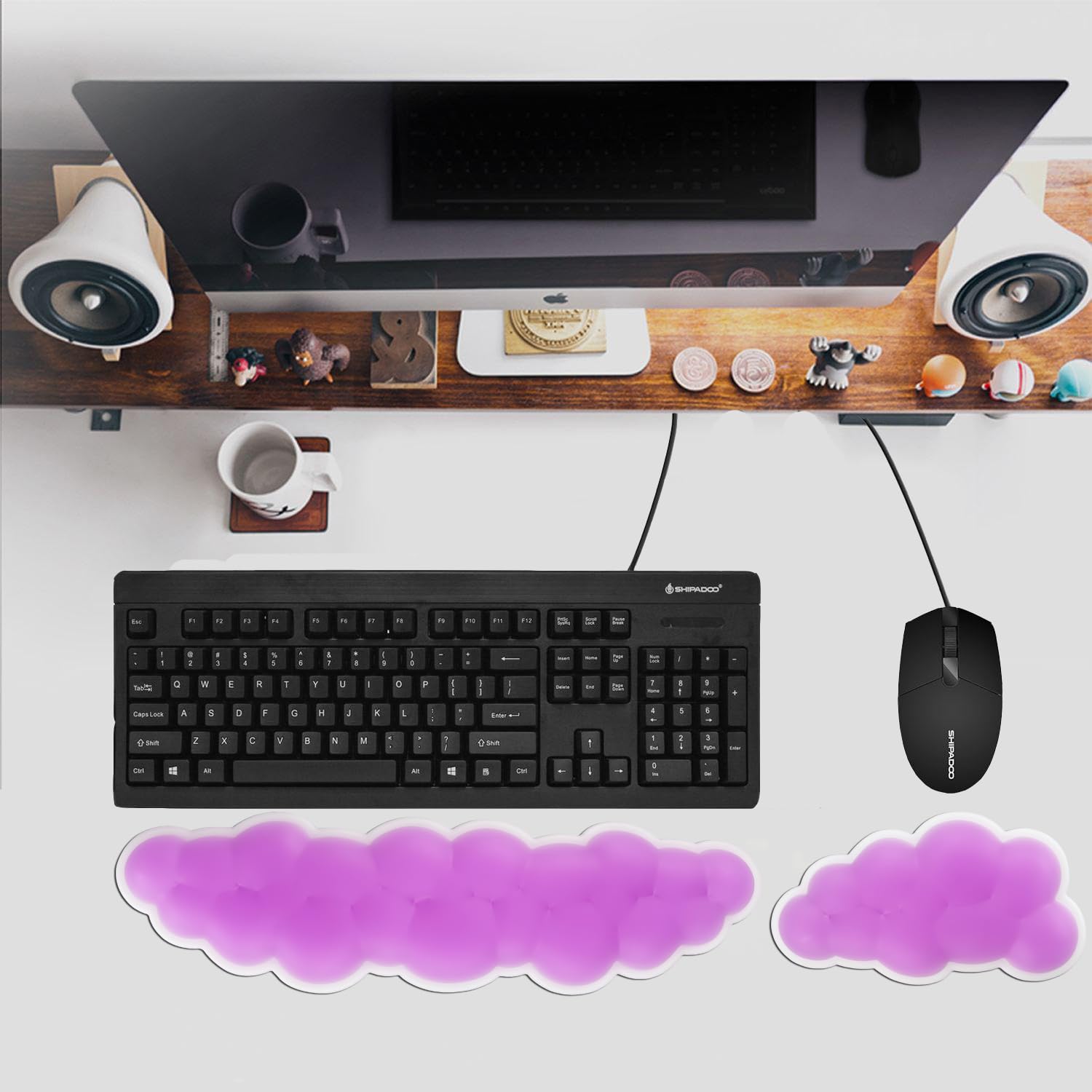 ゲル 手首クッション キーボードとマウス 冷却 柔らかい リストレスト お手入れ簡単 汗染みなし (紫)