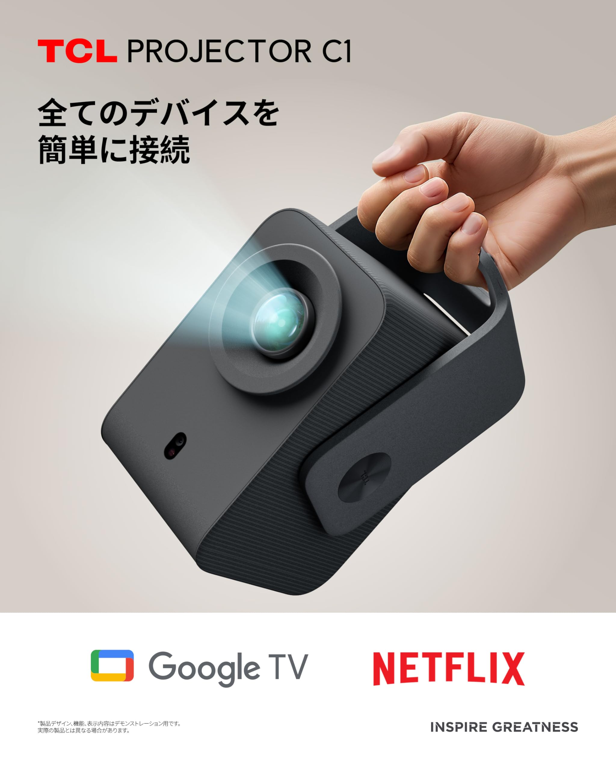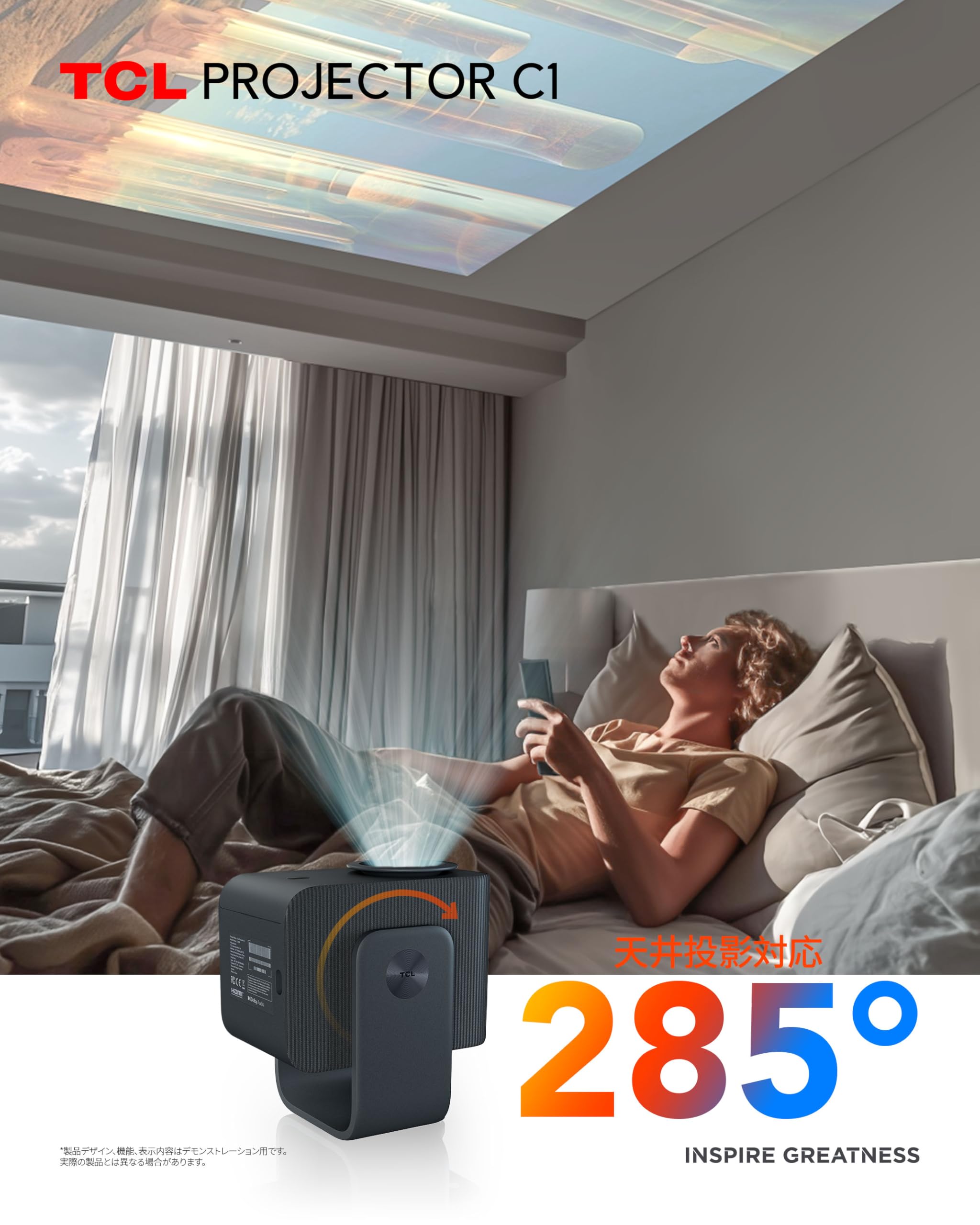 TCL C1 Google TV ポータブルプロジェクター ネイティブ1080P対応 / 天井投影対応/内蔵ジンバル搭載/Google TV公式認証/Wi-Fi・Bluetooth対応/完全密閉型光学エンジン / 8Wドルビーデジタルオーディオ / 最大120インチ投影