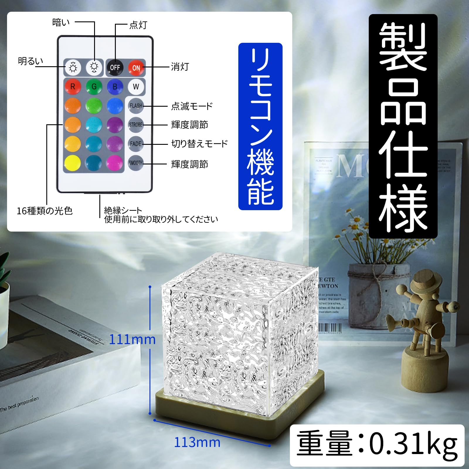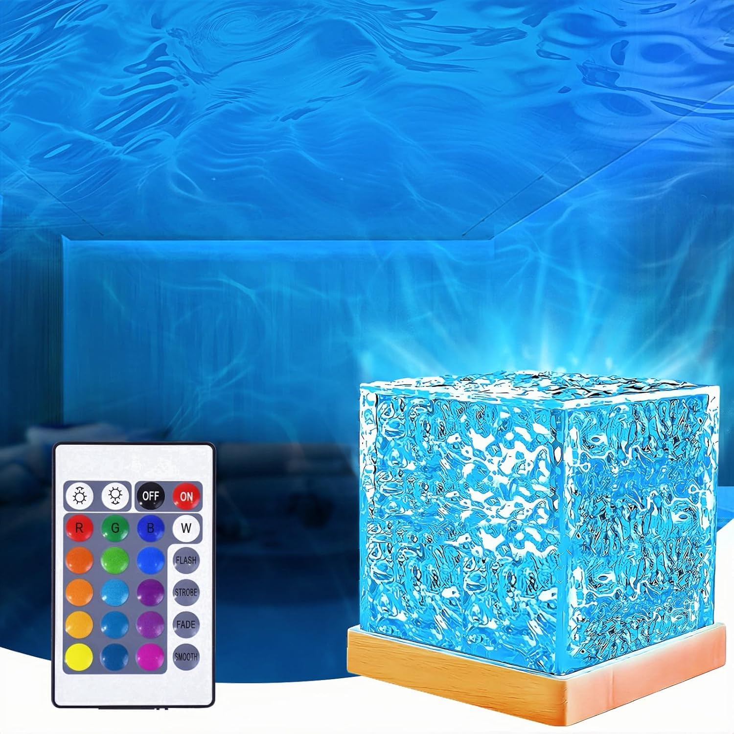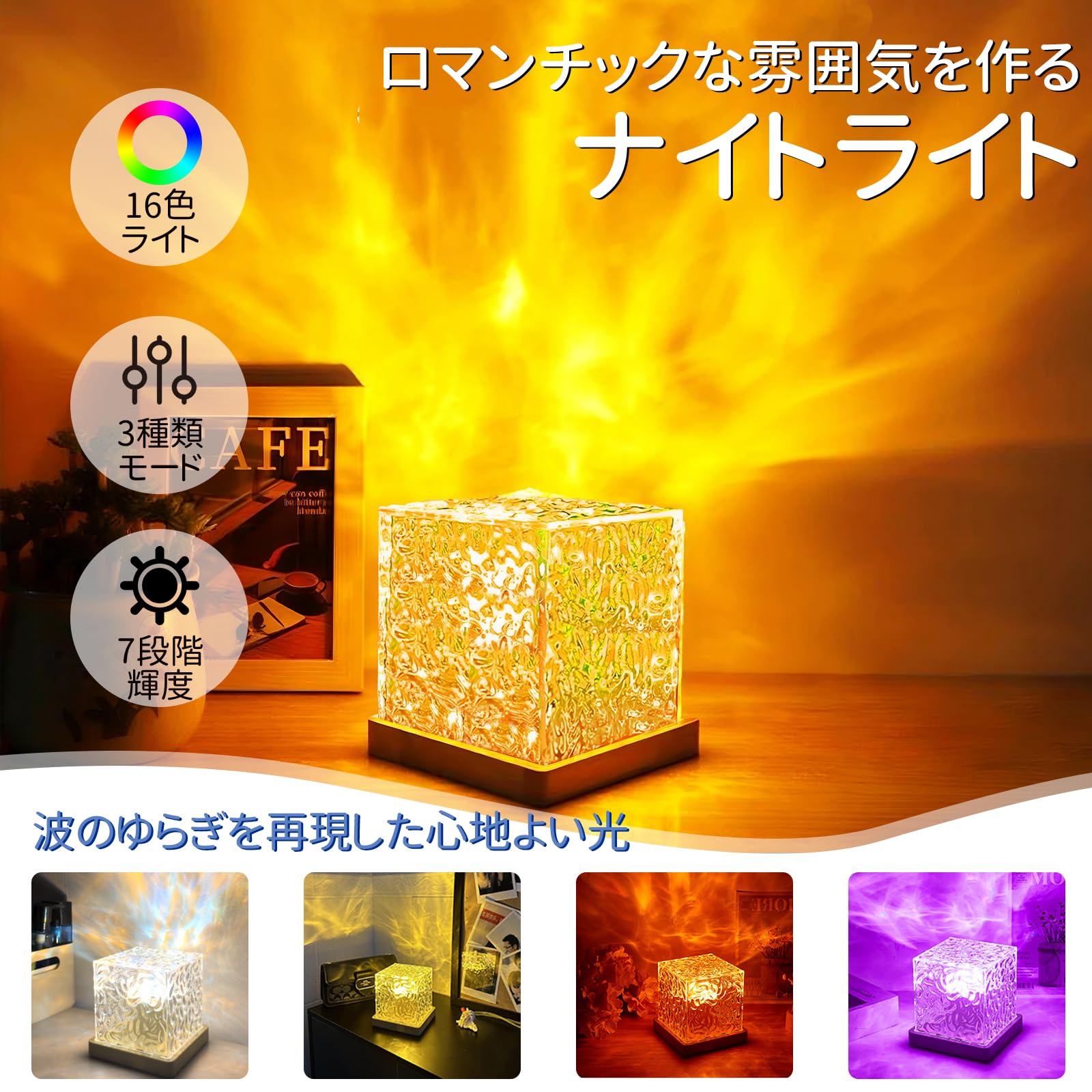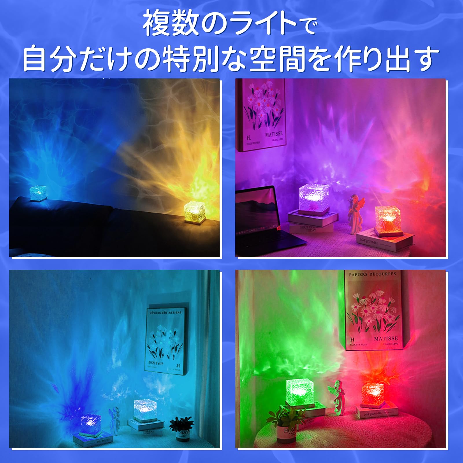 さえだ ナイトライト 海ライト オーロラランプ 【16種類RGB光色・リモコン付き・7段階輝度調節】テーブルランプ ウォーターパターン LED卓上ライト LED 回転ウォーターリップル ナイトライト 撮影/自宅/装飾/写真/パーティー/誕生日/クリスマス/プレゼント (16種類RGB光色)