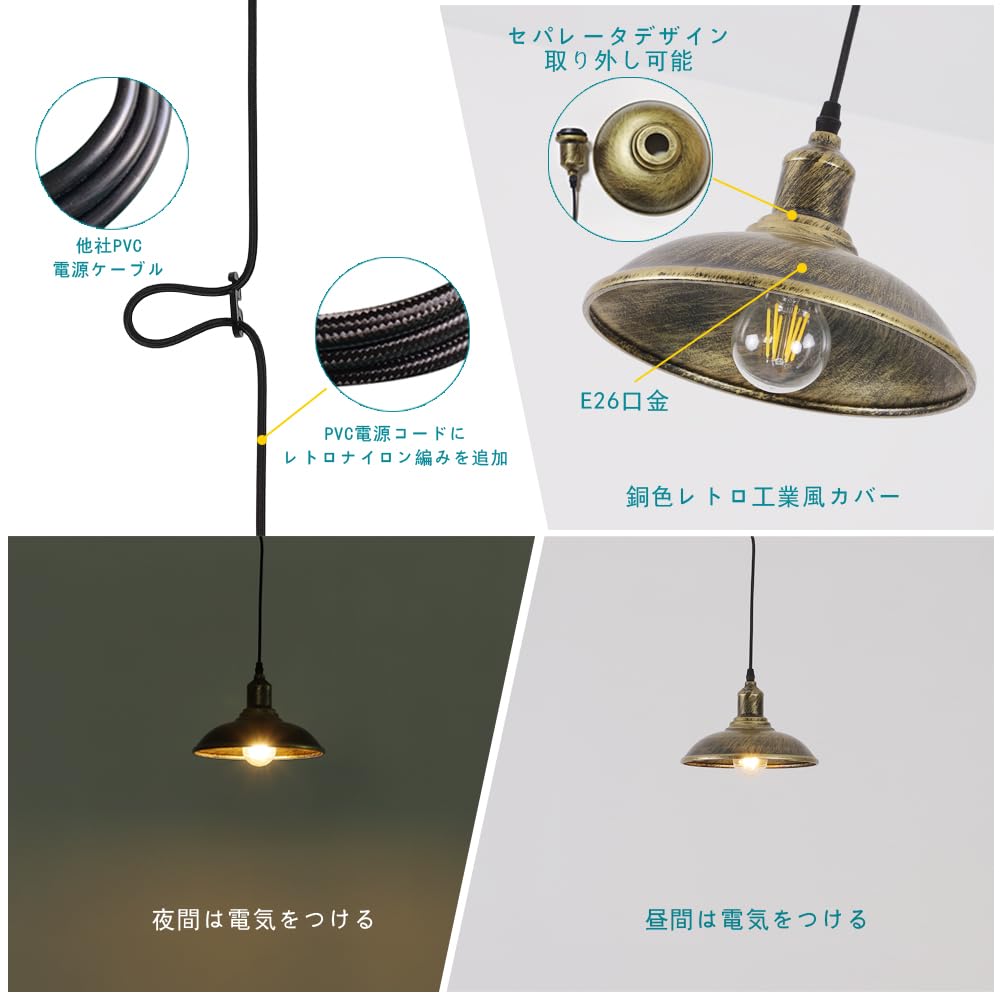 ペンダントライト アンティークレトロ 1灯 ダイニングライト おしゃれ 吊り下げ照明 引っ掛け式 インテリア照明 E26 / E27口金 北欧 居間 食卓 玄関 キッチン レストラン 電球別売り