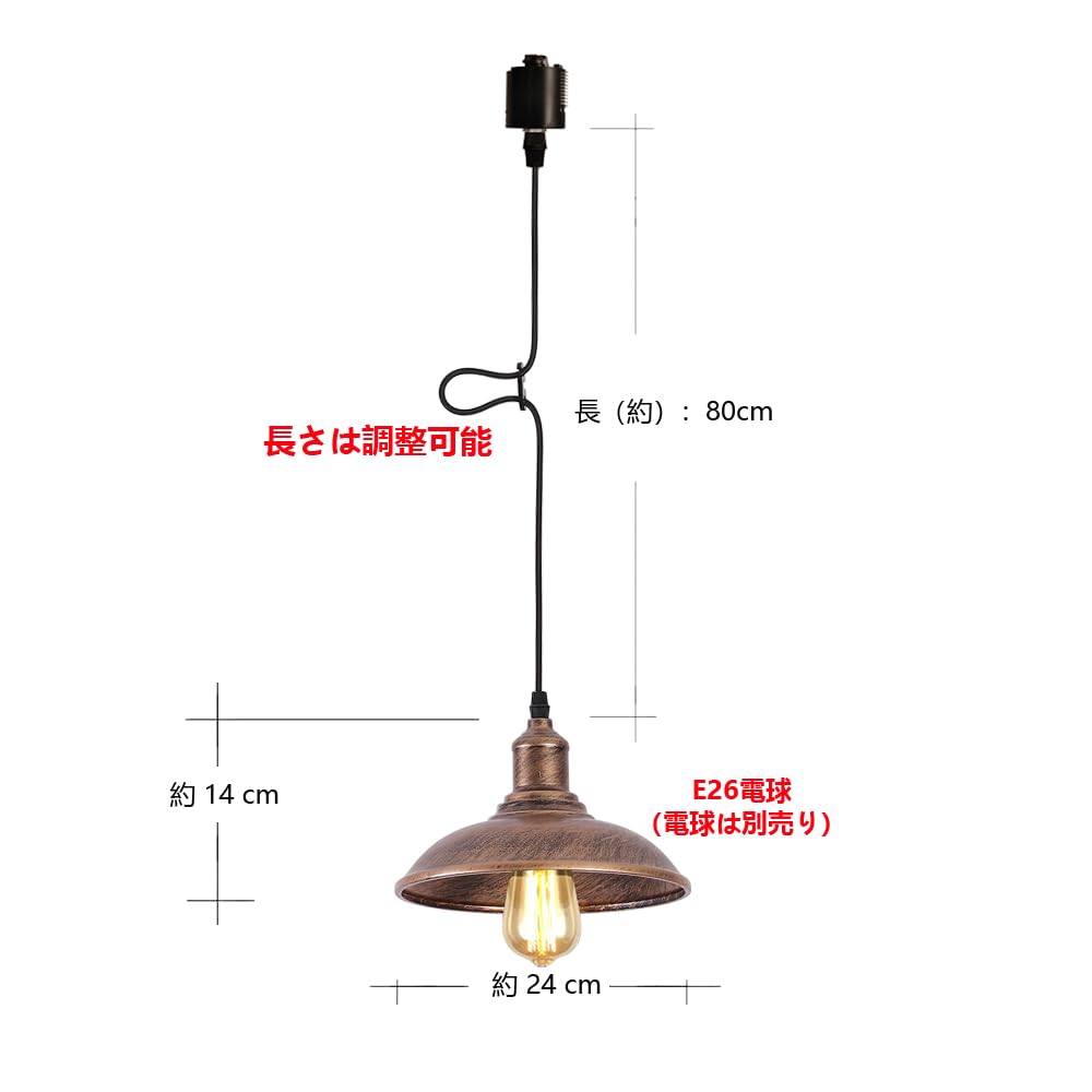 ペンダントライト アンティークレトロ 1灯 レトロ赤銅色に手塗り ダイニングライト インテリア照明 E26口金 居間 食卓 階段 玄関 キッチン レストラン 電球別売り (ダクトレール式·レトロ赤銅色)