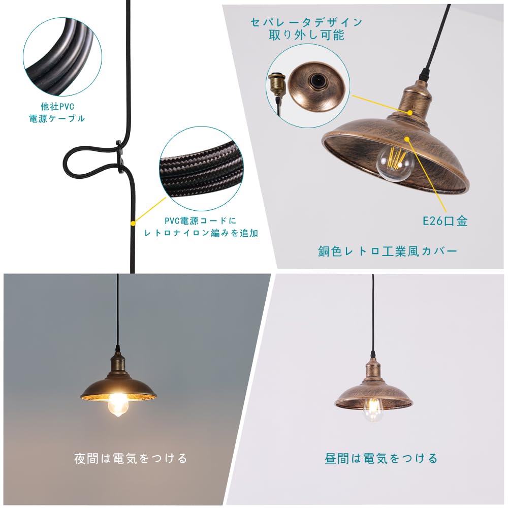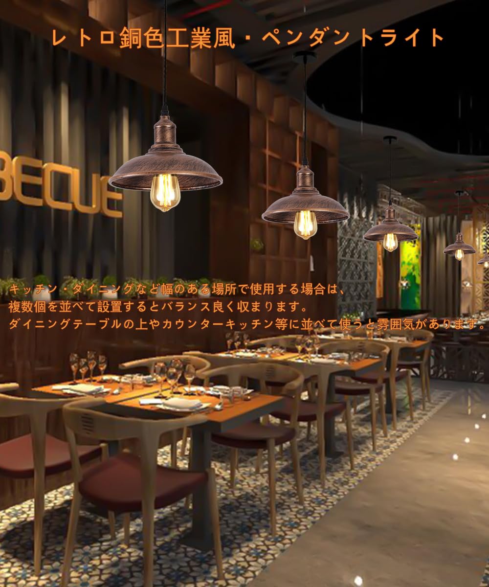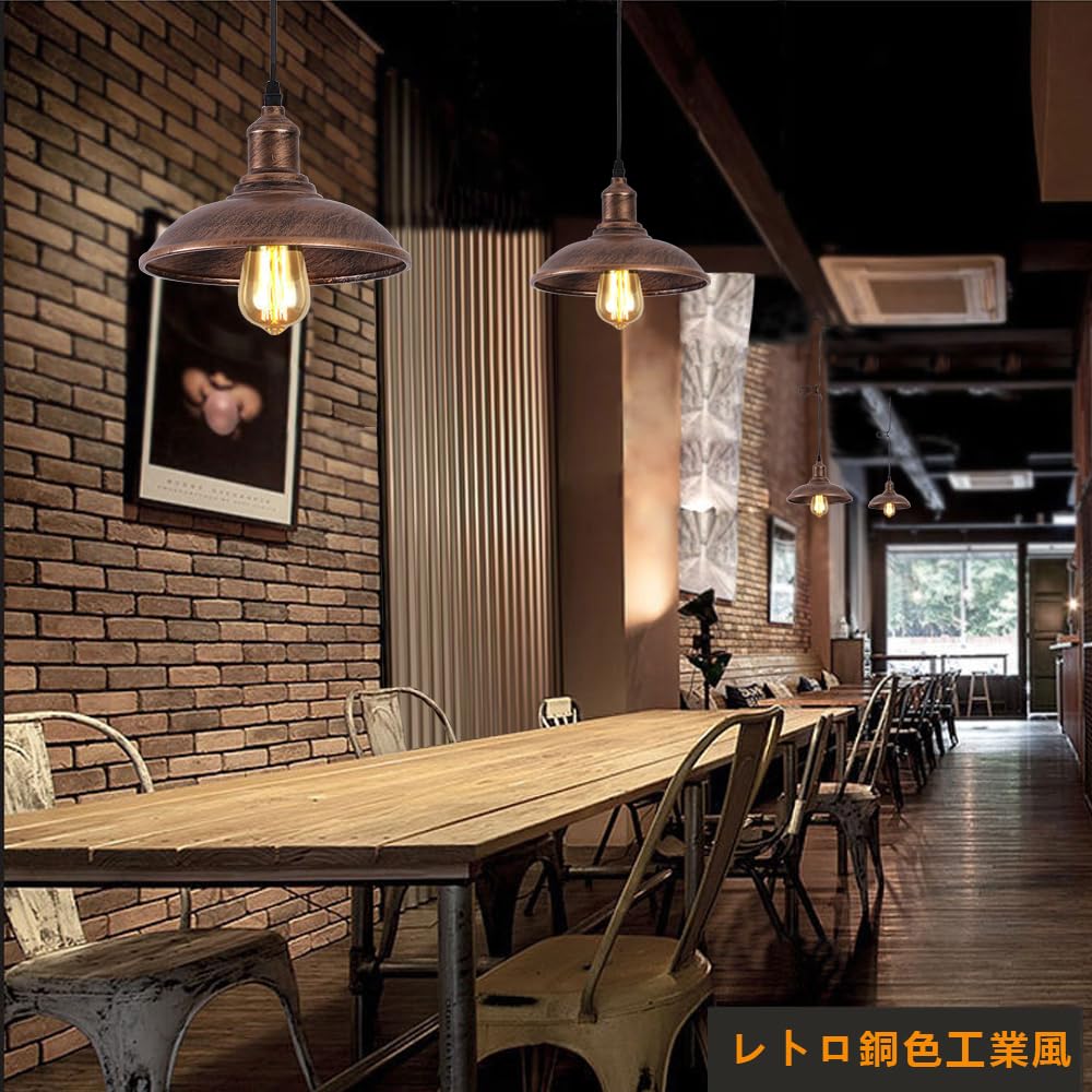ペンダントライト レトロ銅色 吊り下げ ライト シーリングランプ 北欧風 現代の工業風 E26口金 電球別売り スチール製 食卓 ダイニング キッチン インテリア照明 照明器具 天井照明 (引掛シーリング式·レトロ銅色·1セット)