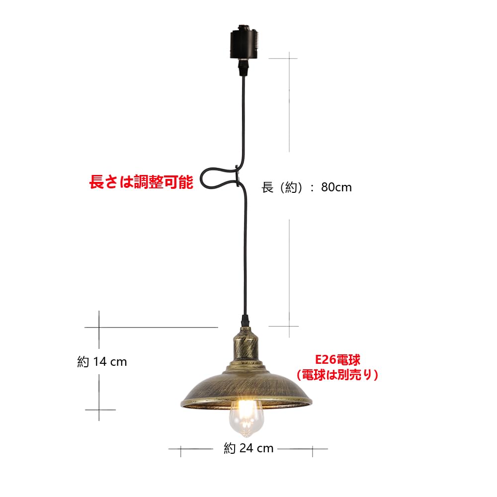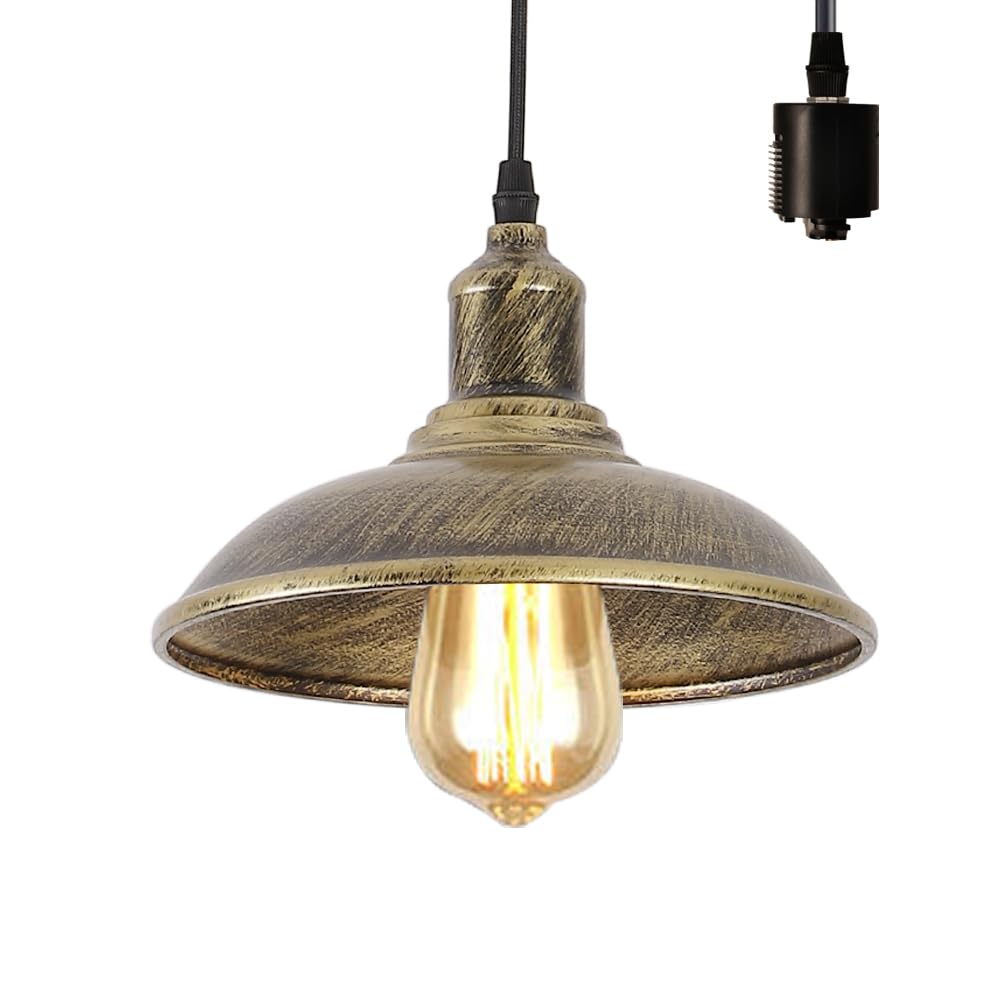 ペンダントライト アンティークレトロ 1灯 レトロ黄銅色に手塗り ダイニングライト インテリア照明 E26口金 居間 食卓 階段 玄関 キッチン レストラン 電球別売り (ダクトレール式·レトロ黄銅色)