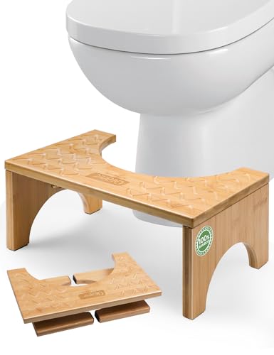 DEANIC 竹製トイレスツール 折りたたみ式 うんちスツール 大人用 高さ18cmの踏み台 滑り止め付き 収納に便利 場所を取らない 健康的な姿勢での排便をサポート