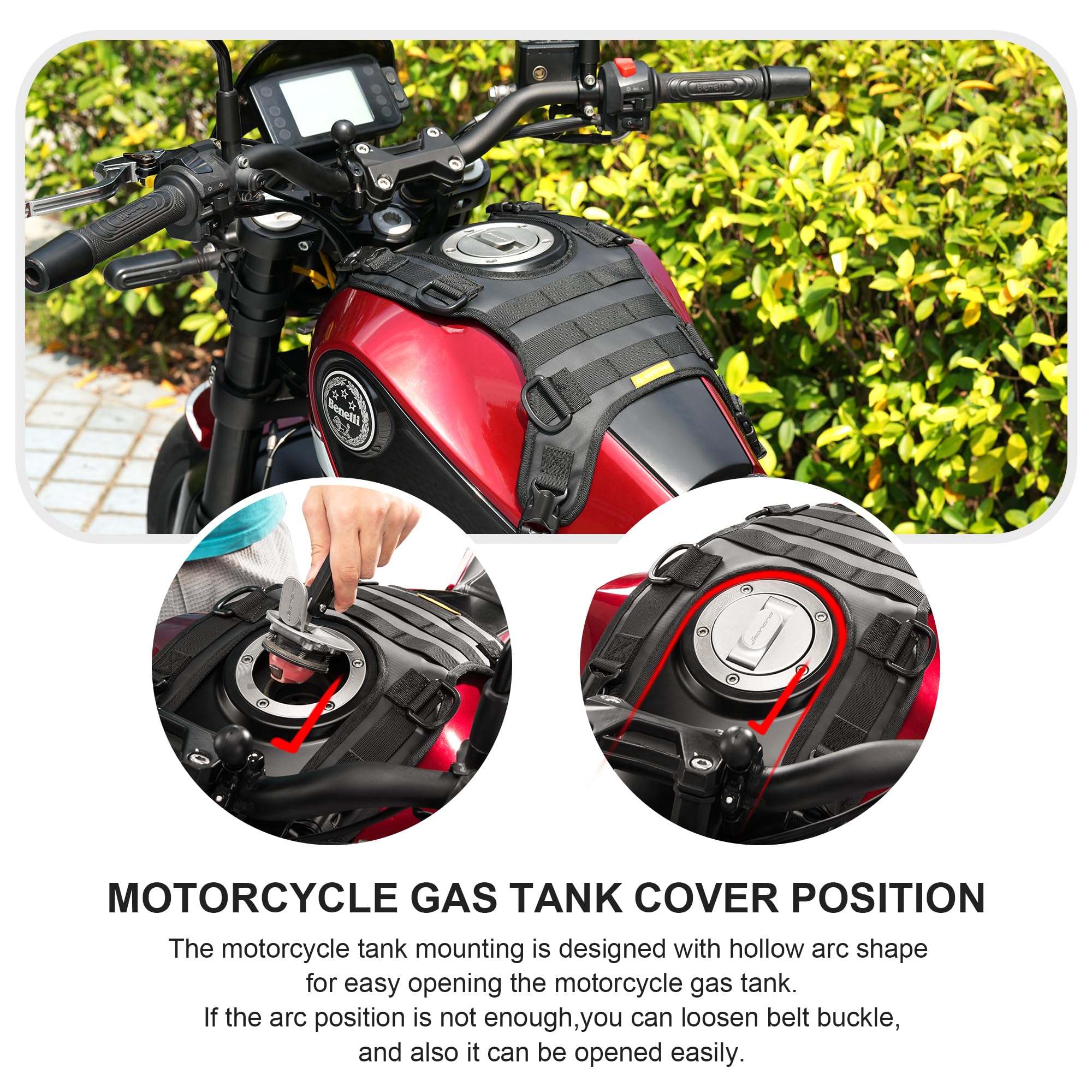 KEMIMOTO タンクバッグ バイク用 磁石 マグネット タンクバック 15°傾斜角度 太陽光反射を軽減 スマホ過熱防止 タッチパネル対応 携帯ポーチ カード入れ iPhone/Android用 鉄質タンクに汎用