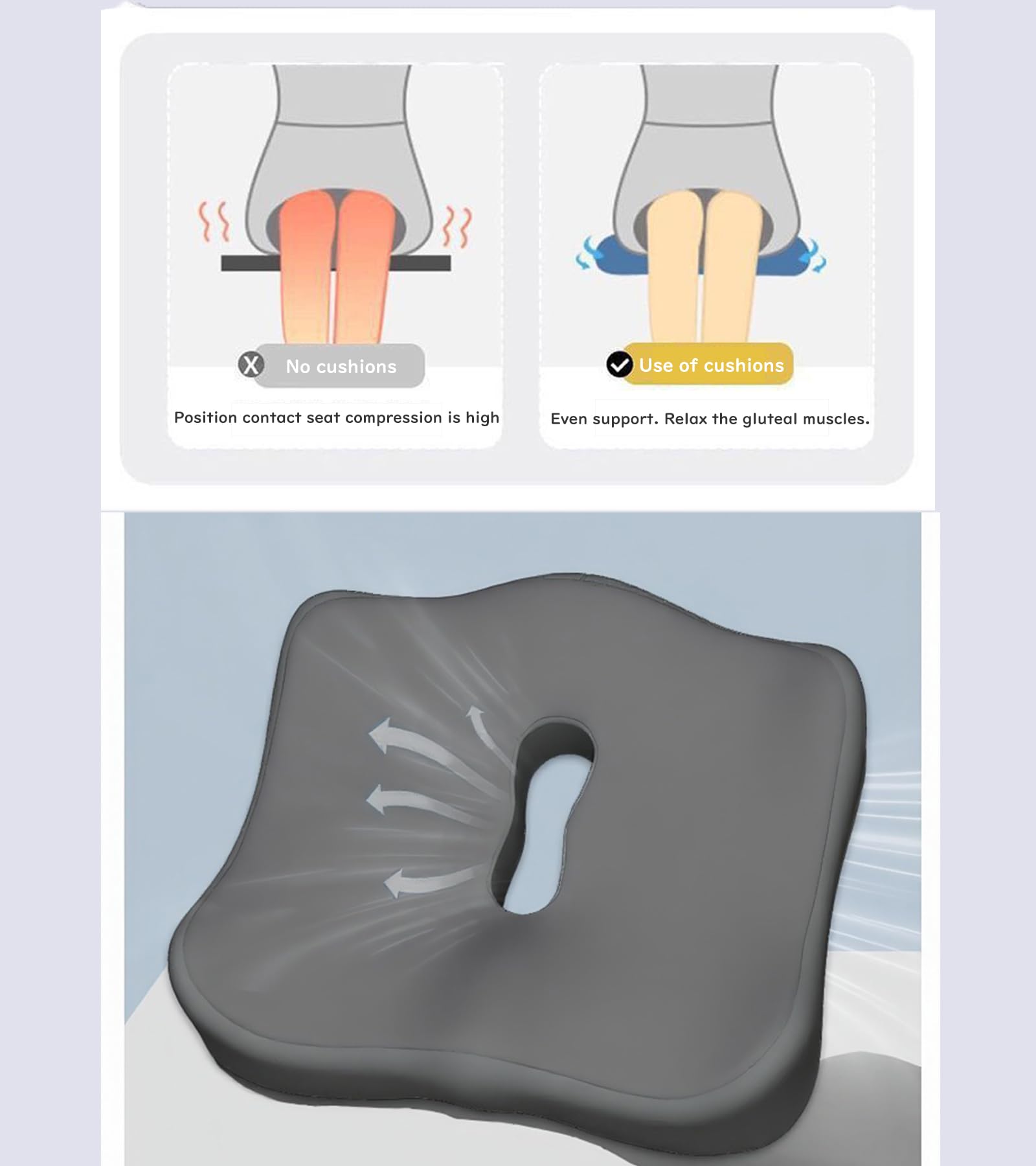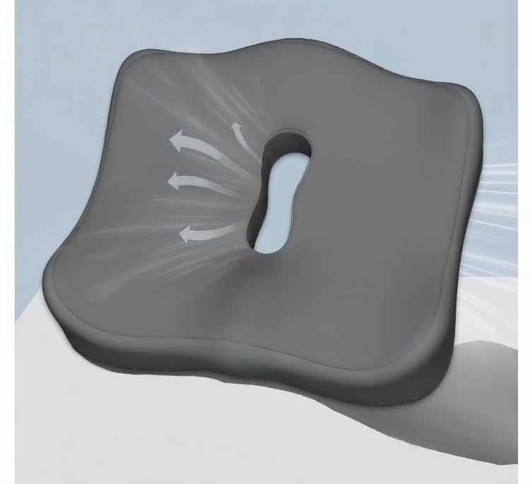 第6世代 クッション 低反発 座布団 骨盤矯正 姿勢矯正 痔 通気 ートクッション 滑り止め オフィス/車中/車椅子/自宅 (附带専用3Dアイマスク付き) ブラックグレー