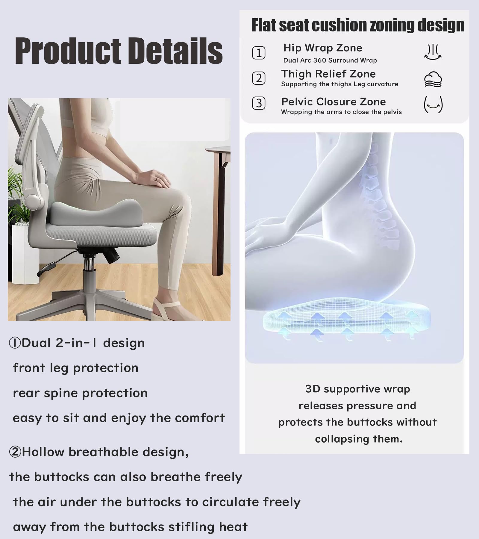 twendlejz 椅子 クッション 美尻 座布団 低反発クッション 40x37cm|3D立体設計 骨盤サポート 姿勢矯正 車/オフィス用 洗えるカバー付き(空芯設計でお尻解放)