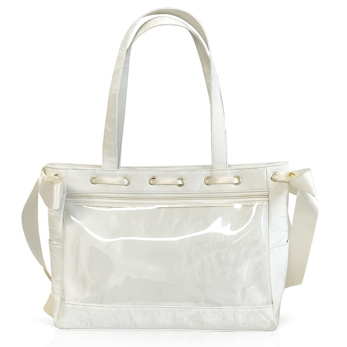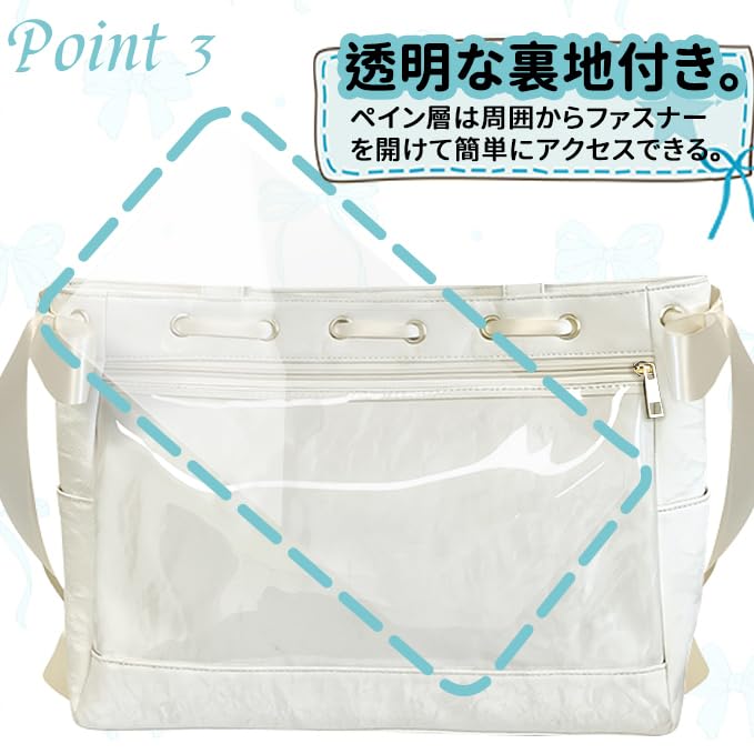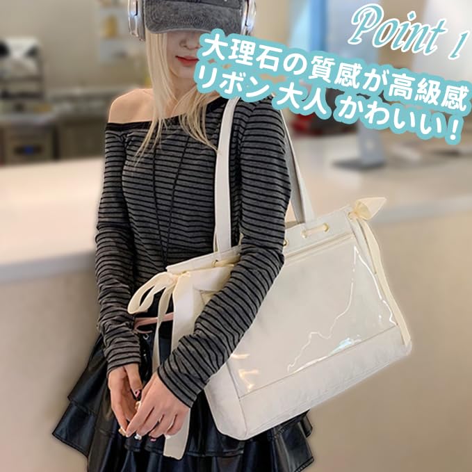 [YOBLUELO] 痛バッグ 痛バ ショルダー レースアップ トートバッグ デコバッグ A4 推し活 クリアバッグ レディース リボン飾り付き