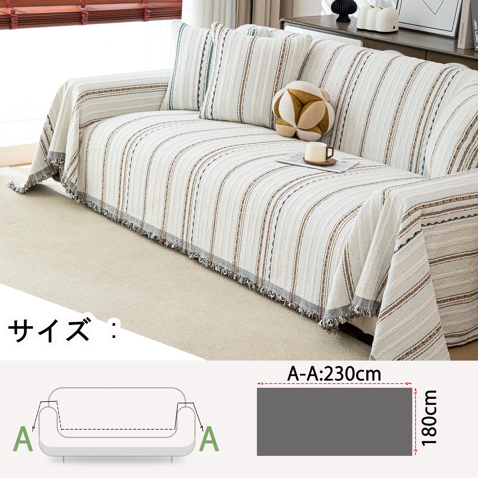 Fenspeed ソファーカバー 2人掛け 3人掛け 180*240CM 北欧風 滑り止め 柔らかい フリンジ付き ベッドカバー ブランケット おしゃれ 犬 猫 防止 汚れ防止 洗える 両面使える 四季通用