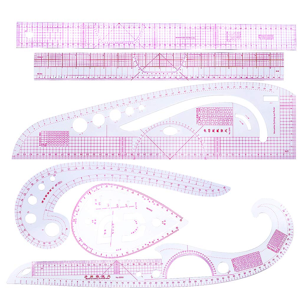 P Prettyia 6様式セット 裁縫用 定規 ルーラー セット 洋裁 多機能 ストレート 曲線 縫製定規 曲線定規 図画定規 洋裁 衣装 カーブ定規 手芸 設計 描画ルーラー カーブルーラー ソーイング定規 ドローイング テンプレート 裁縫道具 DIY手芸用