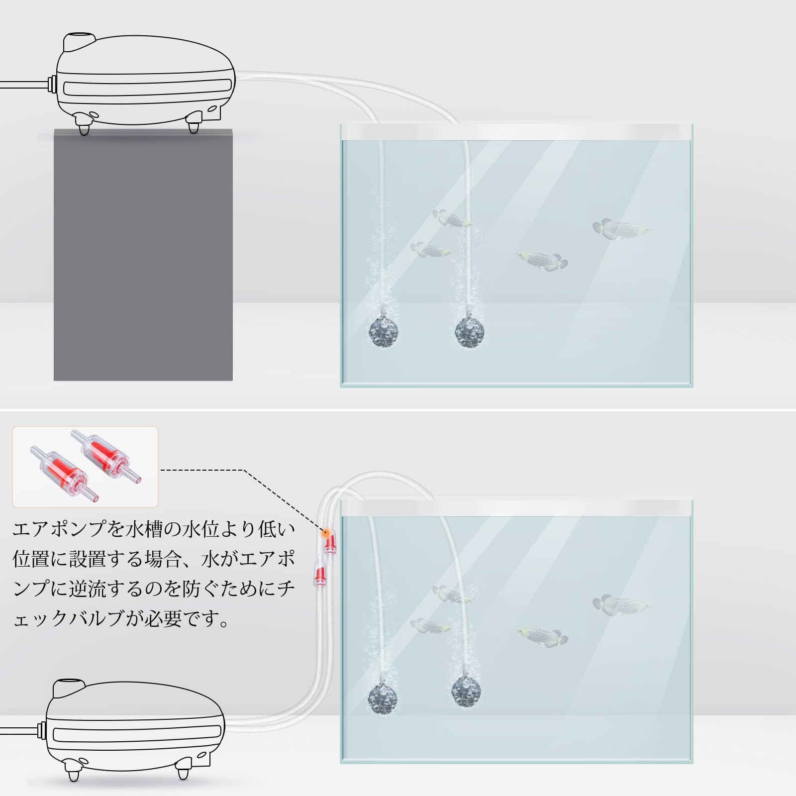 FEDOUR 水槽用エアポンプのアクセサリーセッ、内径4mmエアチューブ3M/逆流防止弁/エアストーンなど、一般的な水槽用エアポンプに適用