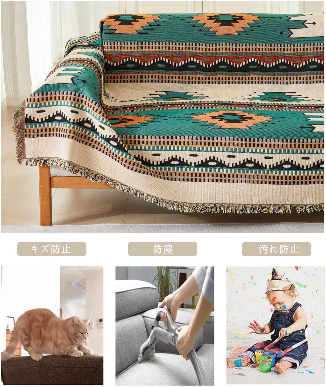 TMVOK マルチカバー ソファカバー 長方形 180*230cm 肘付き 肘なし フリンジ付き 汚れ防止 保護カバー 犬猫対策 綿 2人掛け キャンプ テーブルクロス カウチカバー リバーシブル 洗える 四季通用