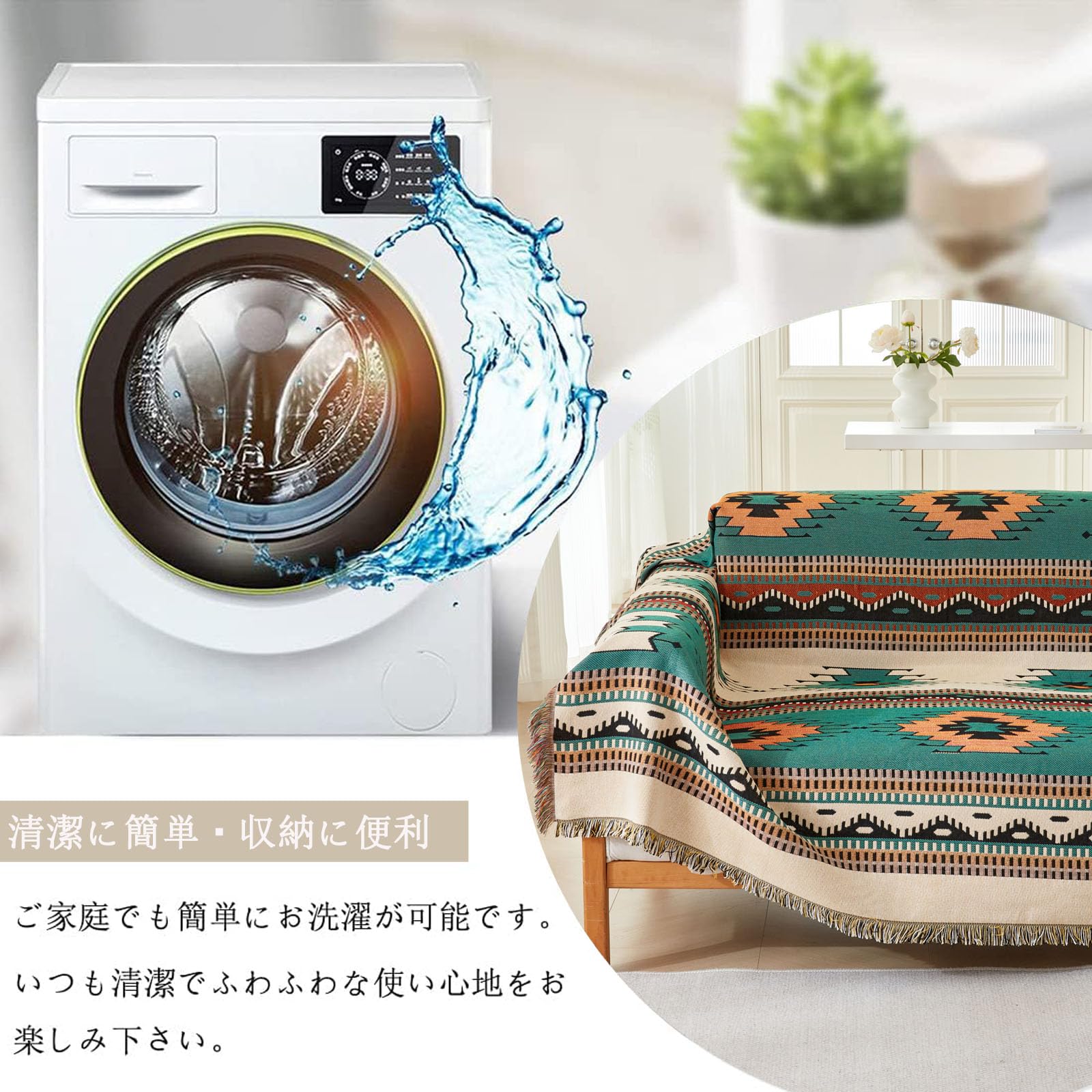 HomeFirst マルチカバー 長方形 北欧風 マルチカバーソファー 180 300cm リバーシブル ソファーカバー 大判 ソファー ブランケット ベッドカバー フリンジ付き 綿 保護カバー 防塵 キズ防止 汚れ防止 水洗い 四季通用