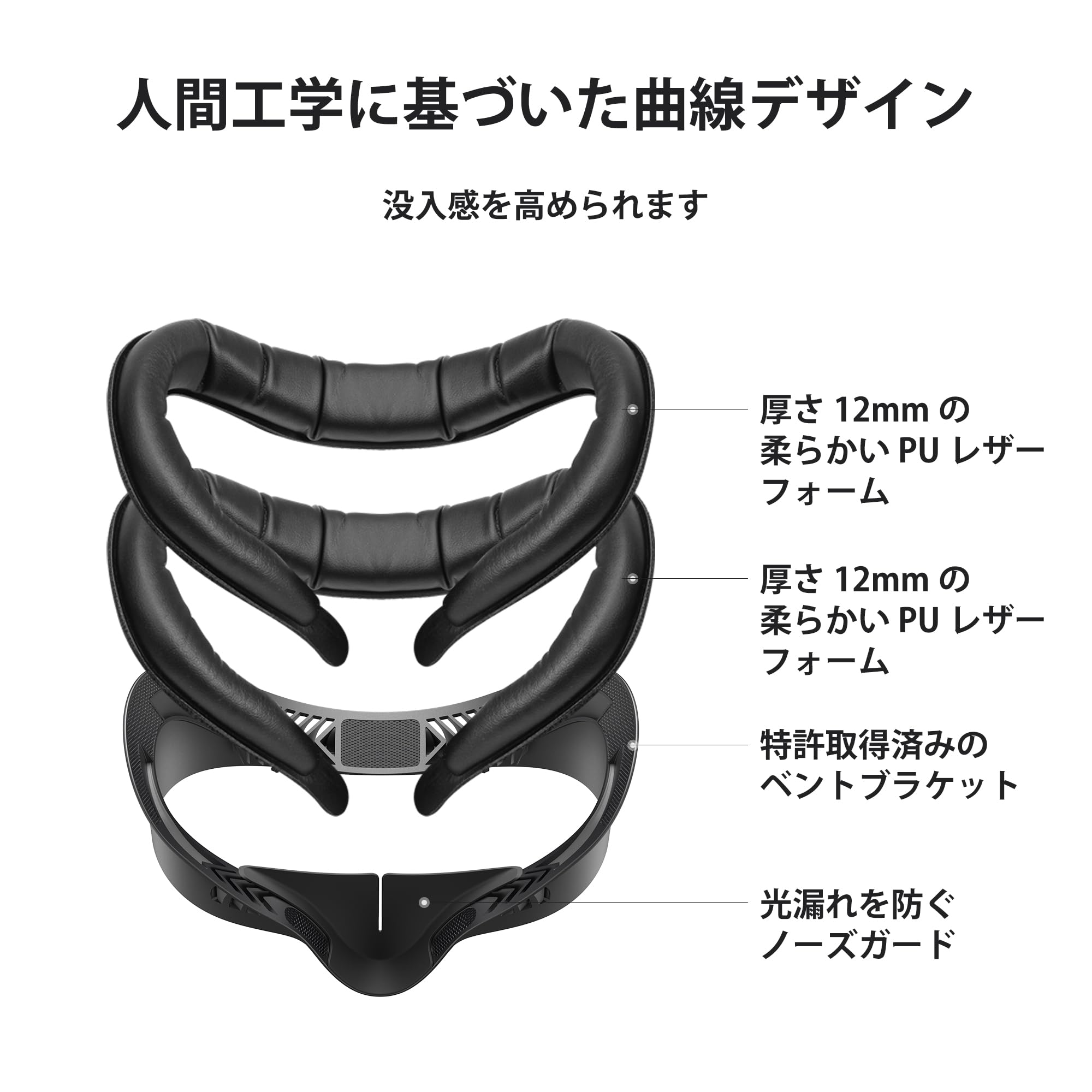 KIWI design V4 meta quest 3Sに対応 フェイスカバー フェイスクッション PUレザー&低反発フォーム メタクエスト3s用 柔らかい付け心地 フィット感良いフェイスパット 通気性よく 洗濯可能 光漏れを軽減 quest 3s アクセサリー vr アクセサリー 交換用 (交換クッション2つ)